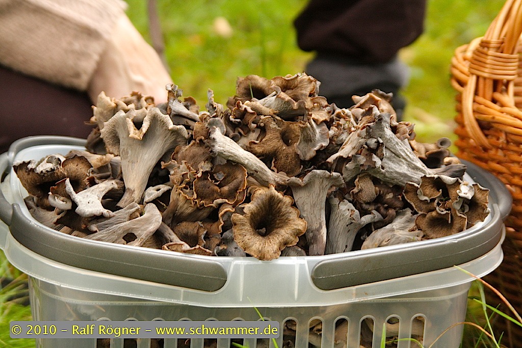 Ein wirklich genialer Pilzsonntag neigt sich seinem Ende zu –“ natürlich nur bildlich gesprochen. In der Realität ist nun erst einmal viiiiiiiiiiel Putzarbeit angesagt, wobei es sich bei den Totentrompeten ja in Grenzen hält. Und dann machen wir uns noch Gedanken, was wir uns noch kochen werden, denn so eine frische Mahlzeit mit diesen, wie die Franzosen gerne sagen, –œTrüffeln des kleinen Mannes– ist sicher nicht zu verachten.