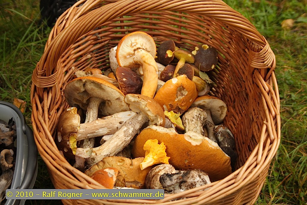 Die heutigen Funde bestanden aus Maronenröhrlingen, Pfifferlingen, Perlpilzen, Flockenstieligen Hexenröhrlingen, Trompetenpfifferlingen, Milchbrätlingen, Rotfußröhrlingen, einem Steinpilz, einem Schwarzschuppigen Birkenröhrling, Schwarzschuppigen Birkenrotkappen, Violetten Lacktrichterlingen, Mohrenkopfmilchlingen, Großen Schmierlingen, Kuhröhrlingen und Sandröhrlingen.