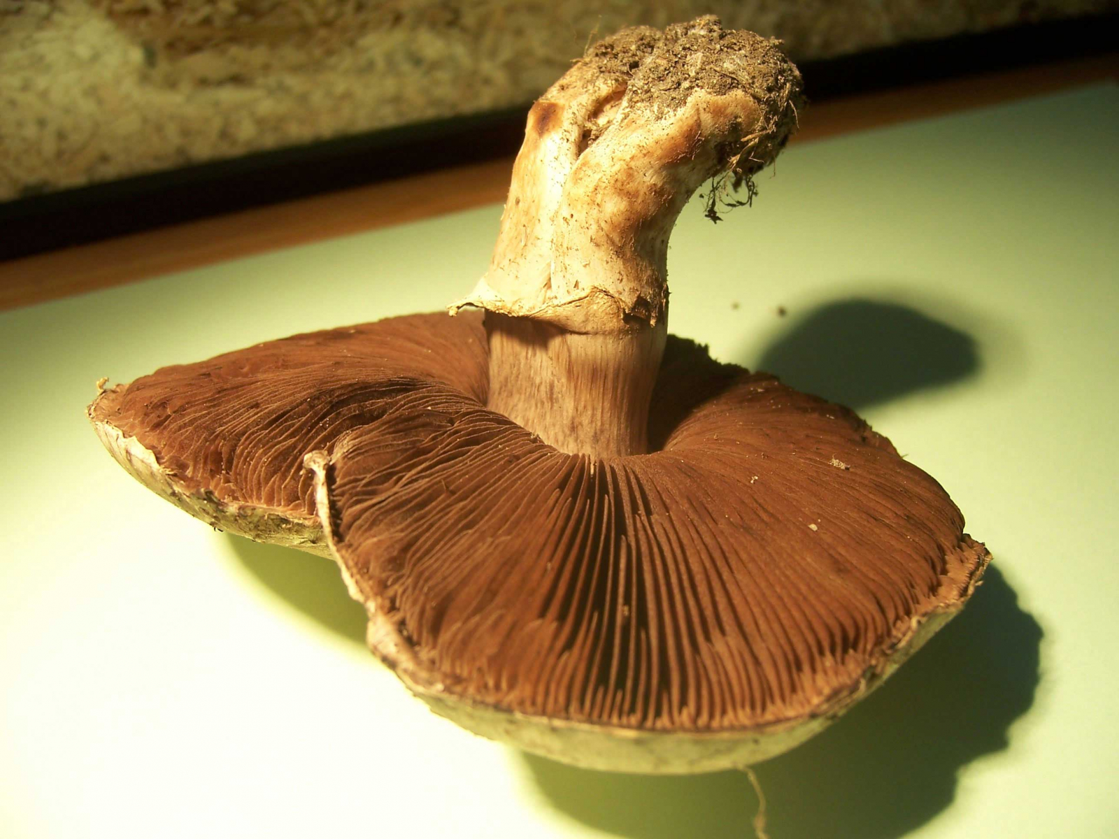 Der Hut war etwa 9x7cm groß, Pilz wuchs in verdichtetem Boden am Wegrand in Kiefernwald. Geruch ist unauffällig "pilzartig", Lamellen sind leicht vom Hut zu lösen.