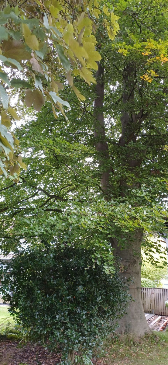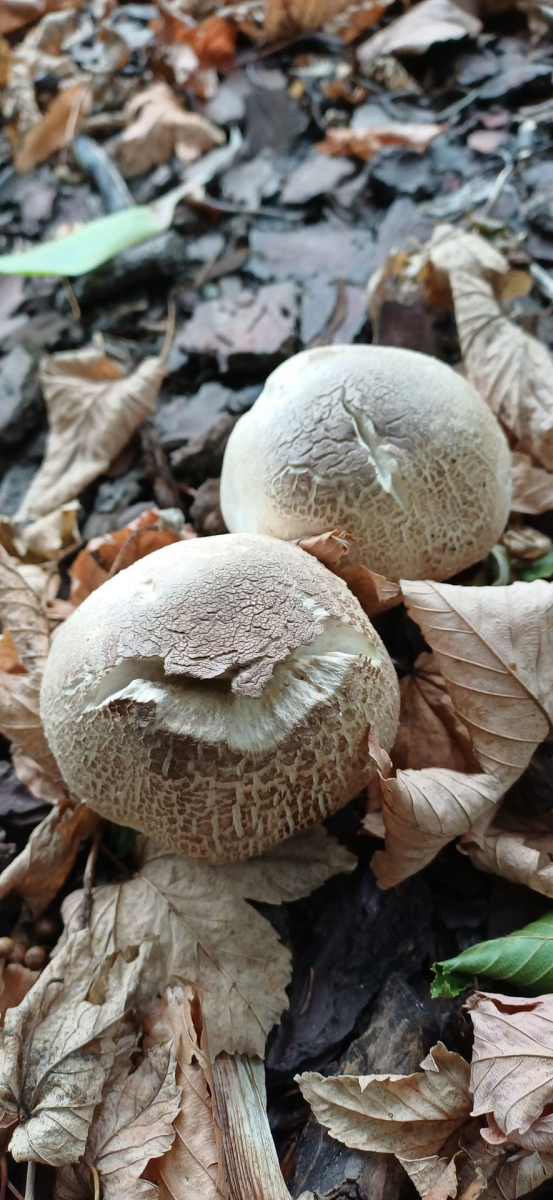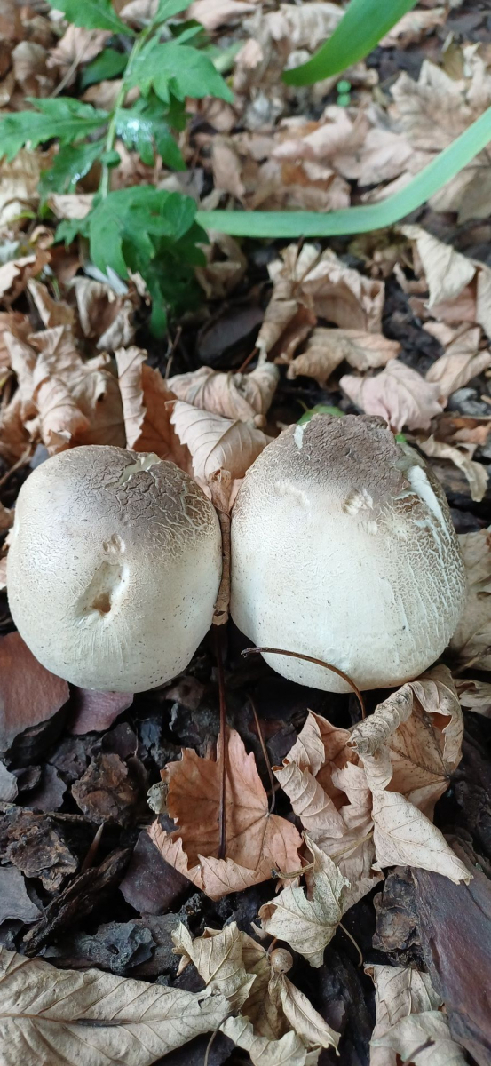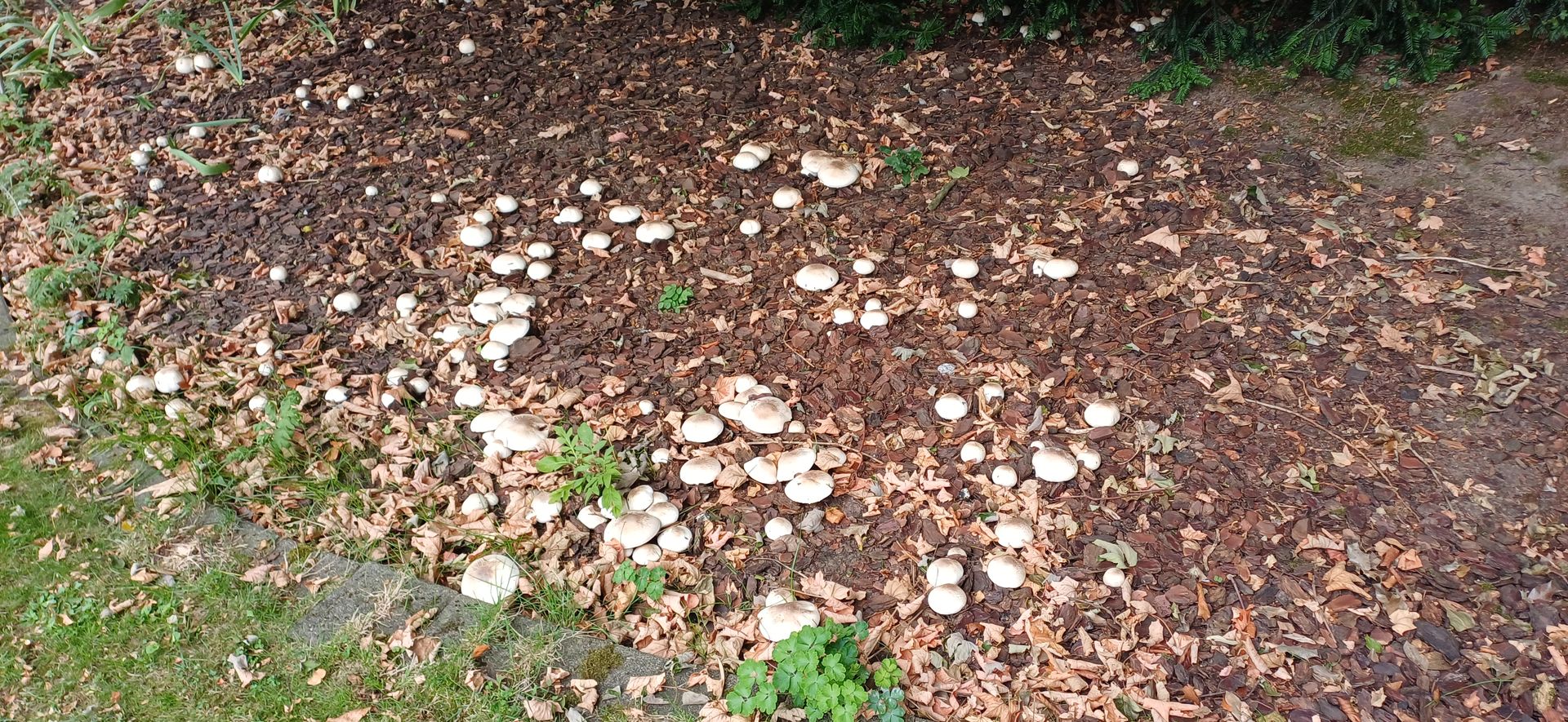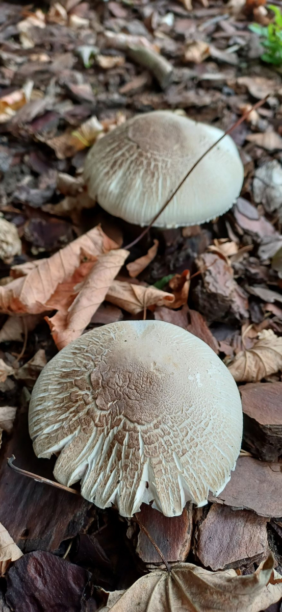 relativ langsam sprieste eine chapignonähnliche Pilzkolonie im Mulchbeet unseres parkartigen Gartens (der auch schon Steinpilze hervorbrachte) unter einer hohen Ahorngruppe und einer ca.7m entfernt stehenden, riesigen (>150Jahre) Rotbuche.