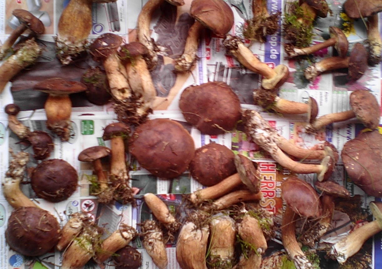 Alles schöne Steinis und MaronenRöhrlinge.. alles zerschnitten und auf einen Haufen geworfen..
