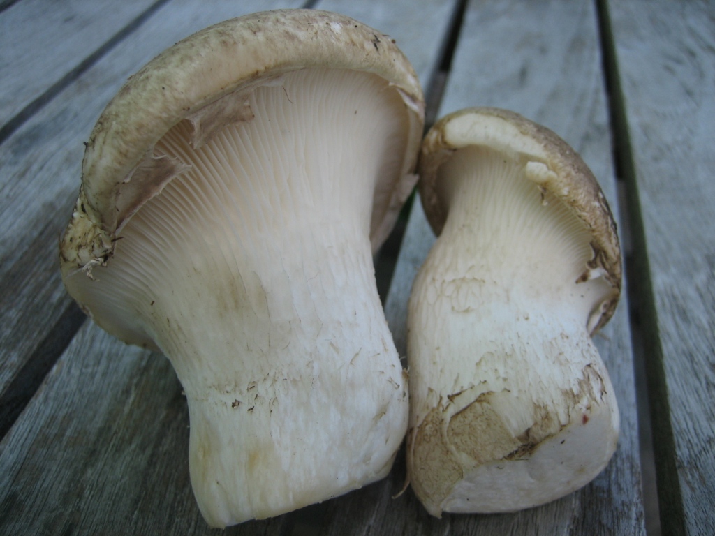 da ich beim schmökern in meinen pilzbüchern vor ein paar tagen in einem gelesen hatte "essbar", habe ich nun ein paar exemplare mitgenommen.