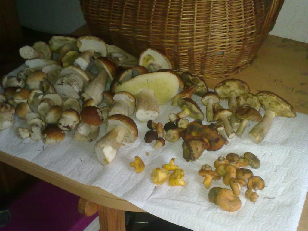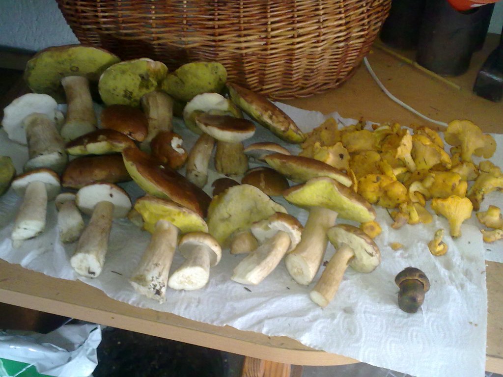 Steinpilze, Pfifferlinge, Maronen, Fichtenreizker (voll Maden) und