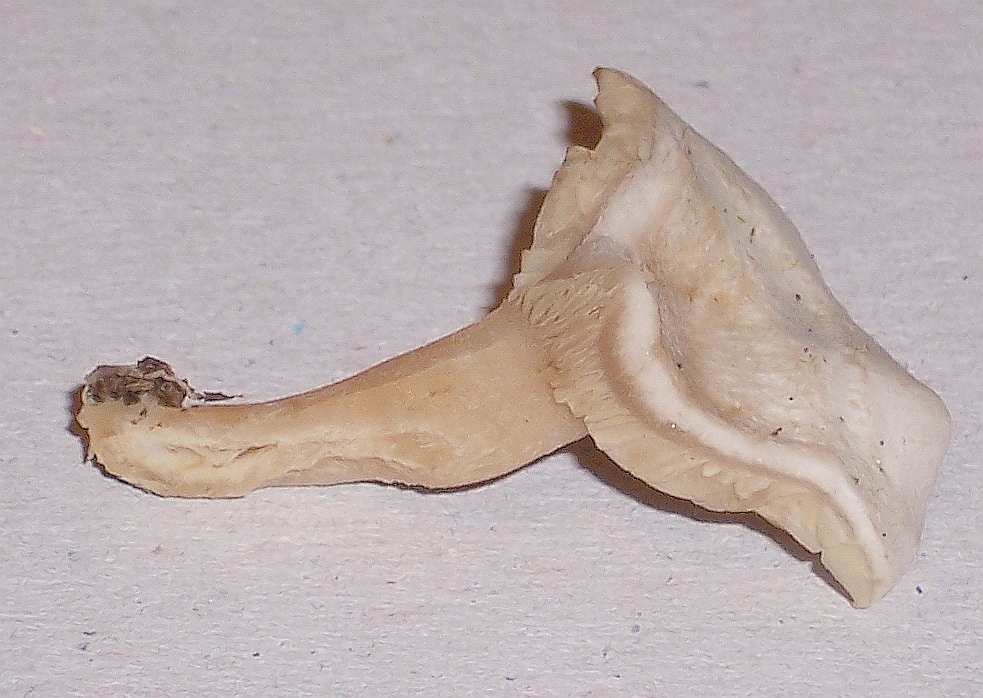 wuchs aus einem noch sehr festen Fichtenstumpf. Der Pilz war hart und gab bei Druck äußerst minimal nach. Höhe ca. 5cmBild 2