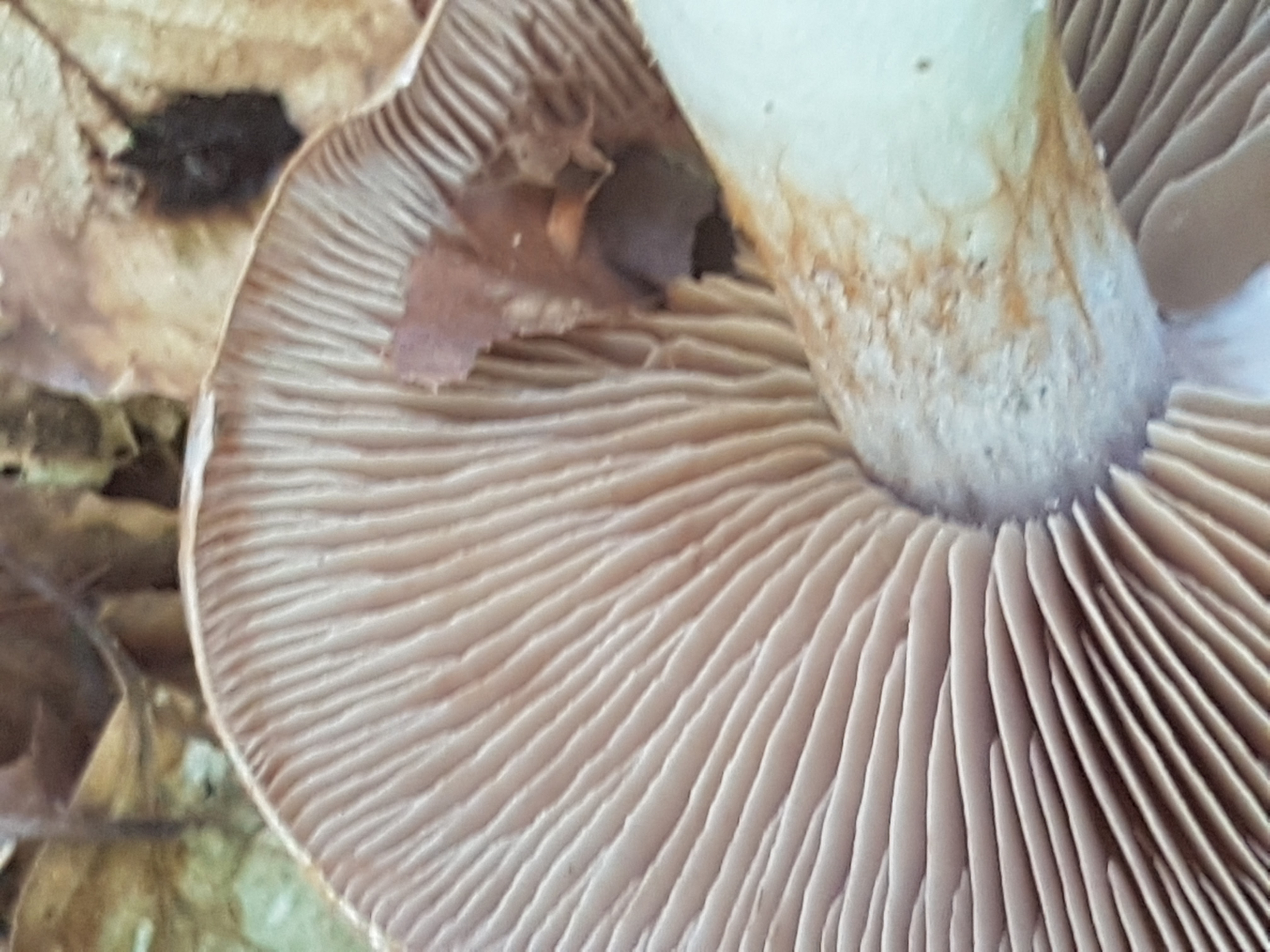 So ist es. Zusätzlich beachte man die herablaufenden Lamellen und die typischen Lamellen Stellungen. Der Pilz war gestern knalllila. Bei Trockenheit ist die Farbe blasser