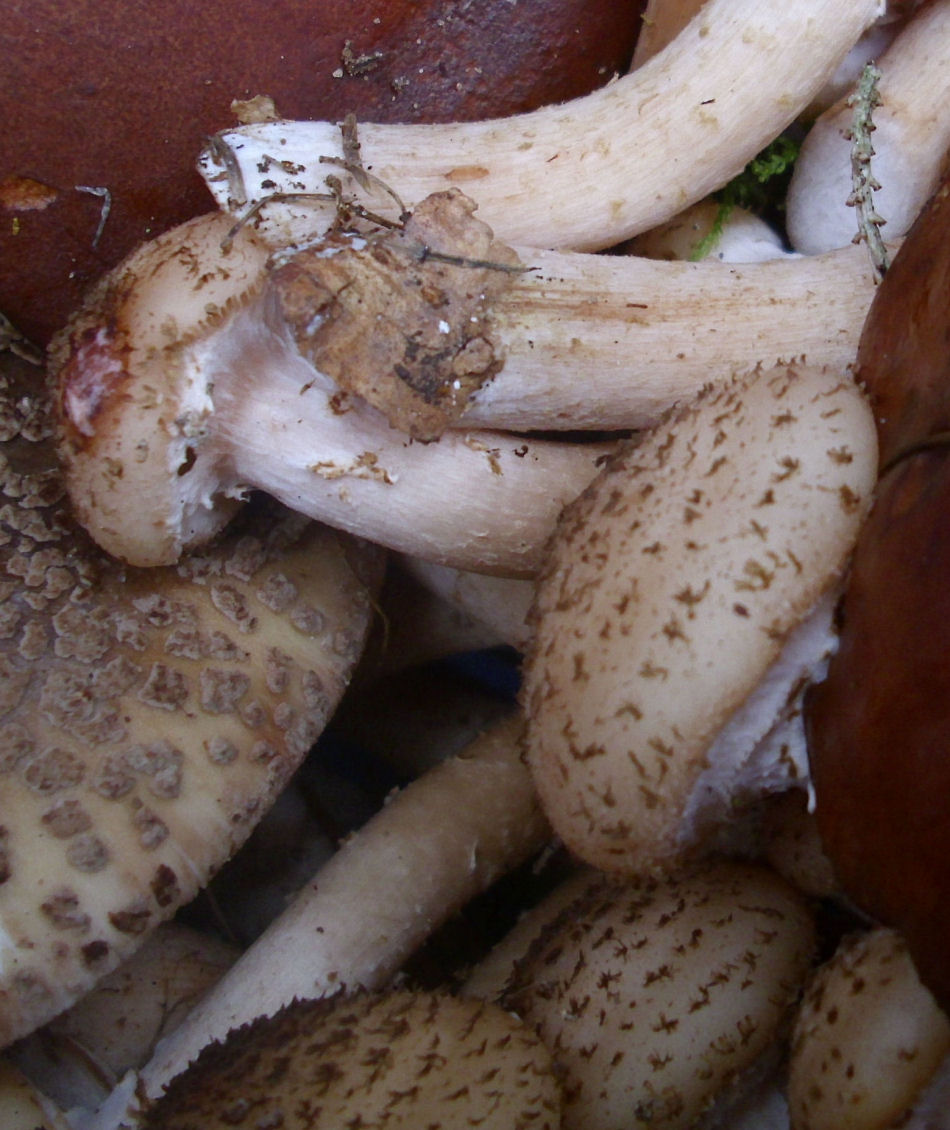 es war diesmal wirklich leicht. ich hoffe ihr habt euch trotzdem nicht gelangweilt.spannend insofern, als man ziemlich gut den unterschied der hutstruktur sehen kann, zwischen dem perlpilz, den viele als erstes zu sehen meinten und dem hallimasch.