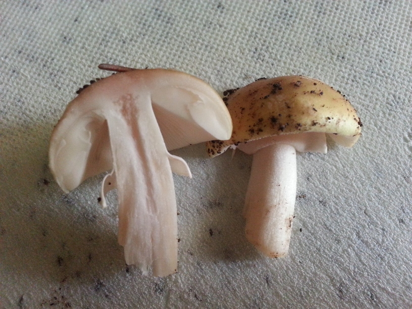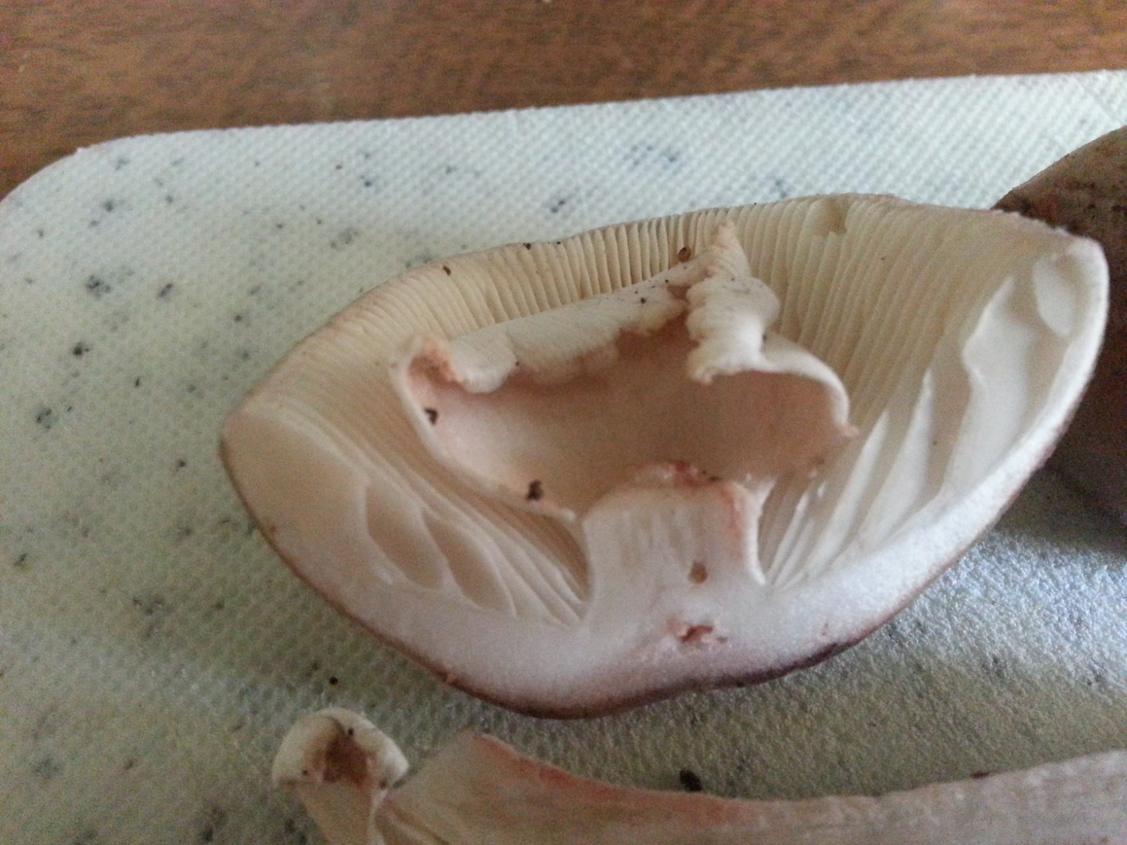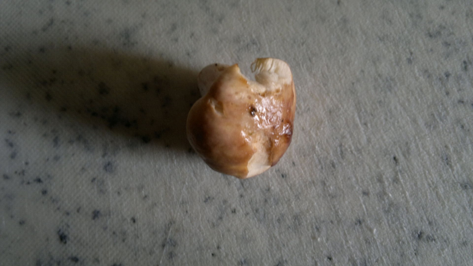 Der vermeintliche Täubling war vor 2 Tagen 3 mal so groß, geschrumpft ist er aber Sporen gab es keine