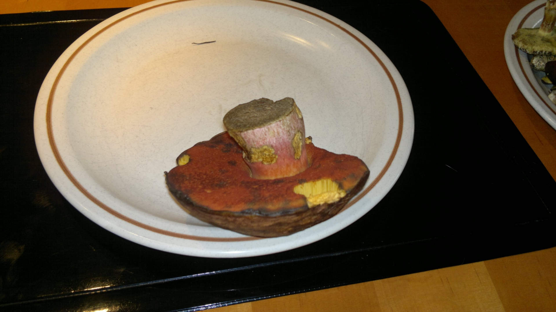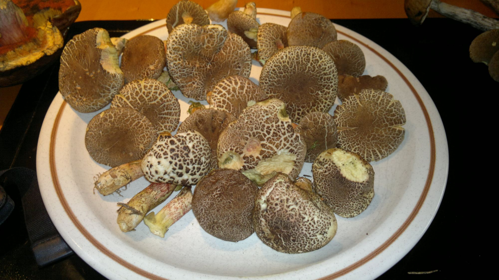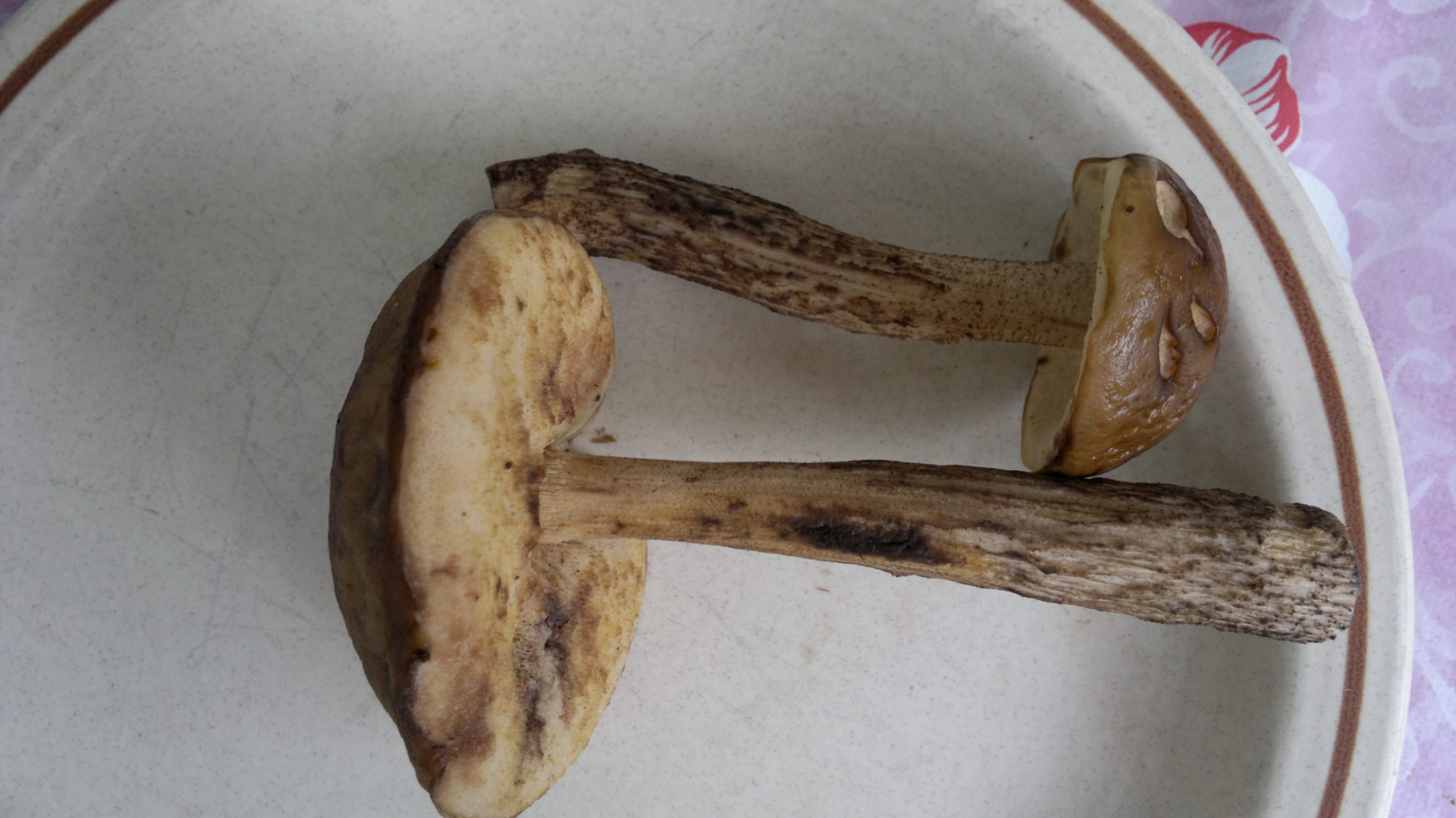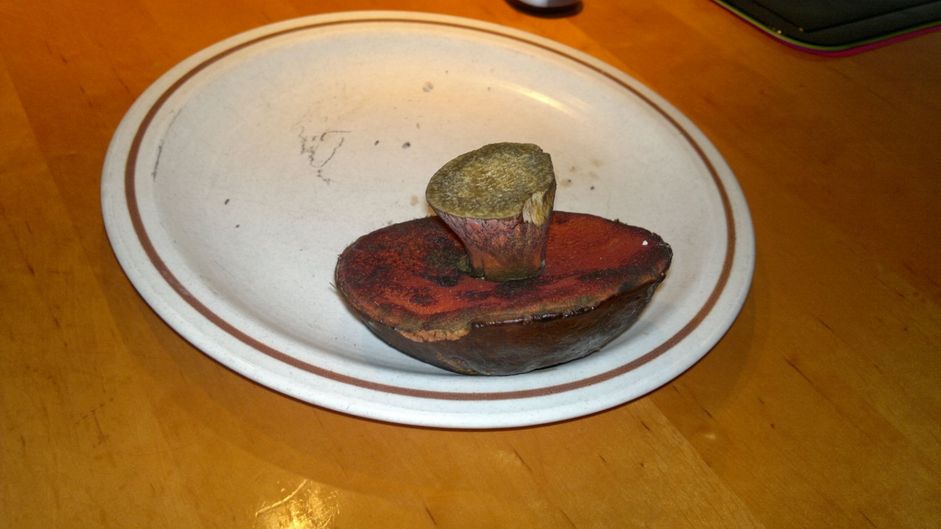 2. Ein Rätsel für mich, von weitem ein Steinpilz (Hutfarbe), beim näherkommen eine Hexe (roter Stiel), vom Schwamm und Schnitt ein Maroni (Blau färbend), vom Stiel her ein Gallröhrling (Netzzeichnung)