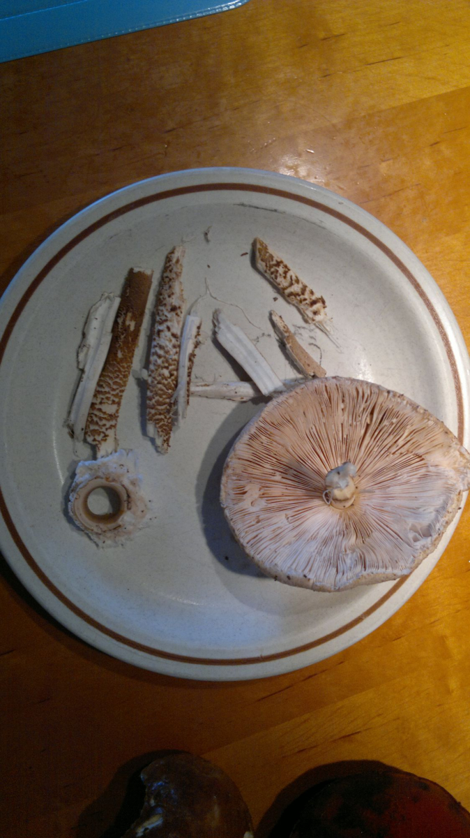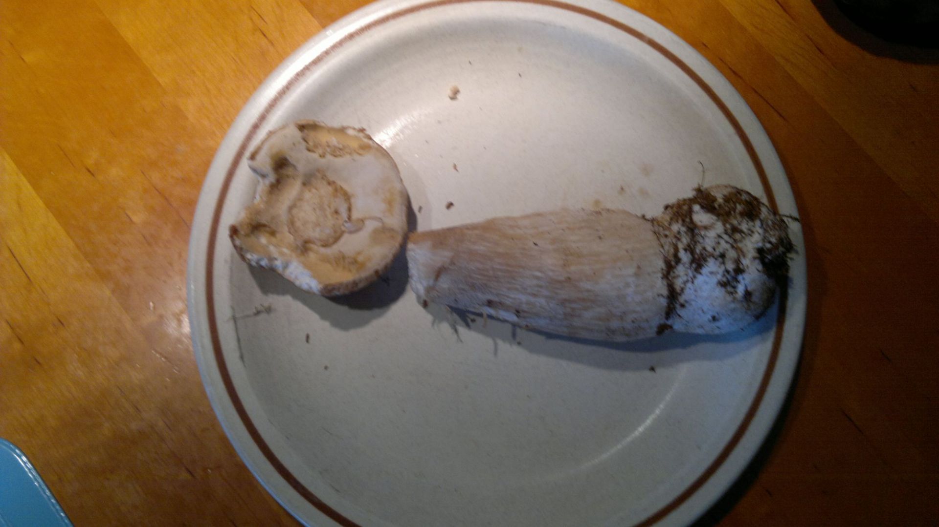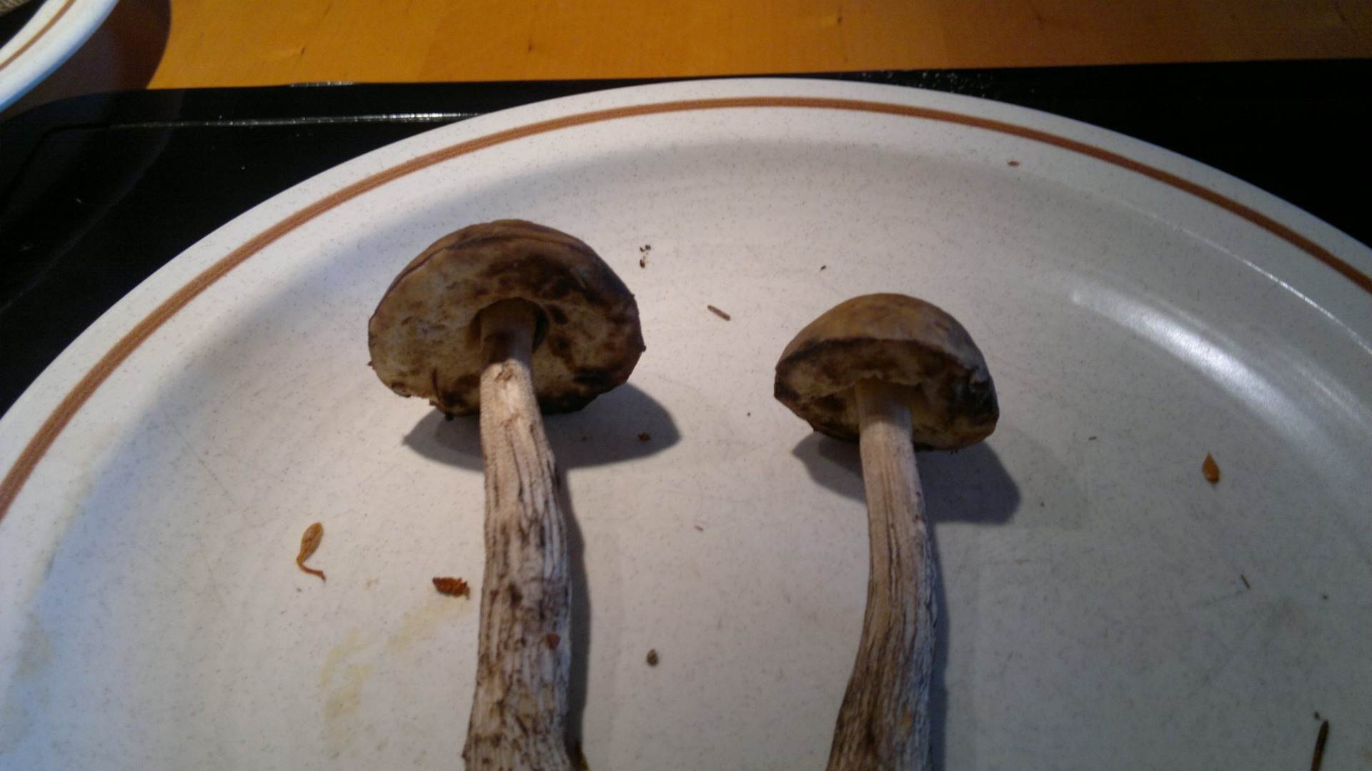 zu 3. ich dachte das Steinpilze immer Füsse haben die nach unten dicker werden und dieser Fuß ist gleichmäßig, der Pilz sieht alt aus war aber nicht schwammig sondern sehr fest.