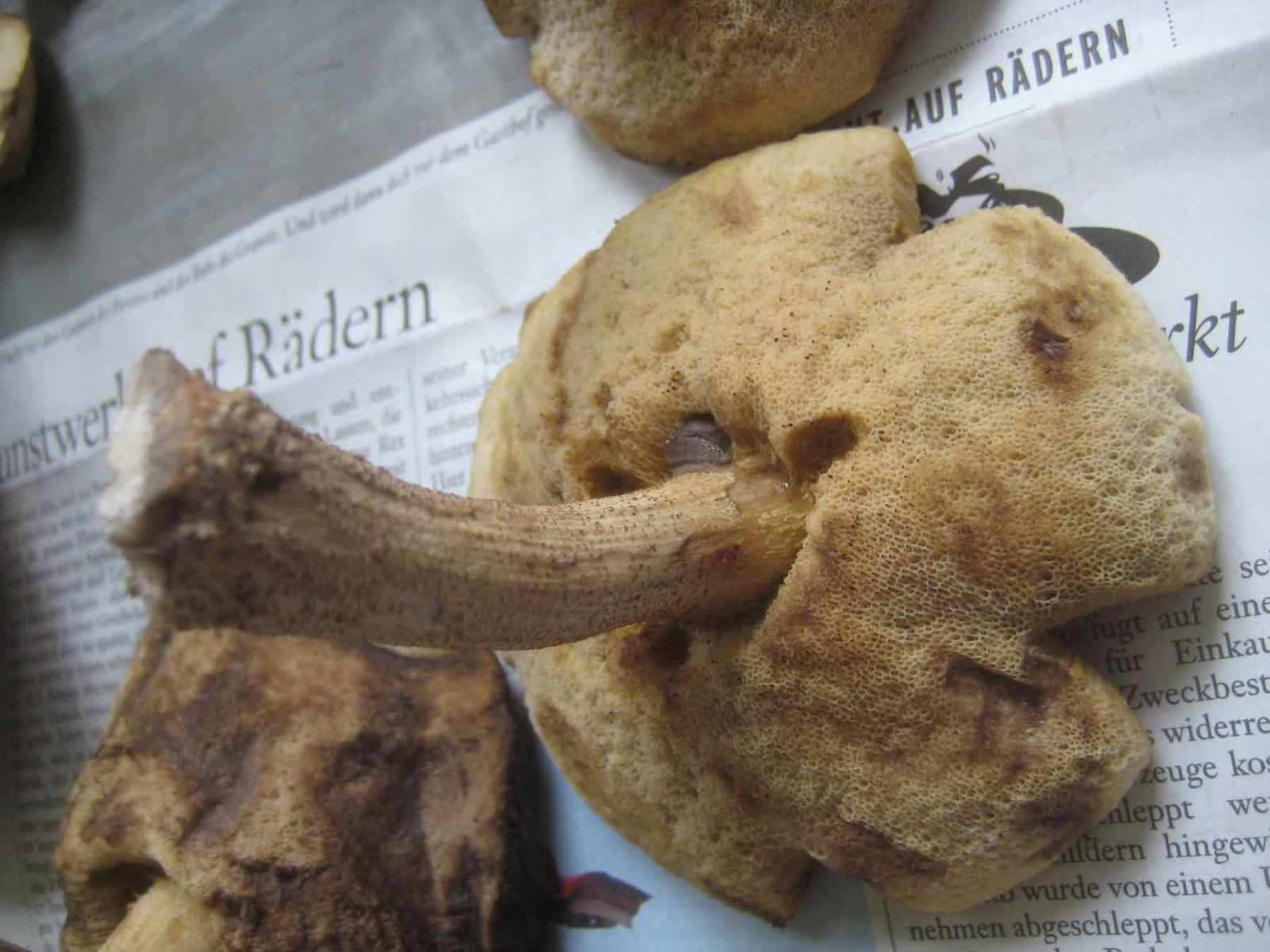 Nach paralleler Suche tendiere ich jetzt auf Leccinum quercinum - Eichen-Rotkappe. Röhrenpilze habe ich hier noch nicht gefunden, dafür im letzten Jahr