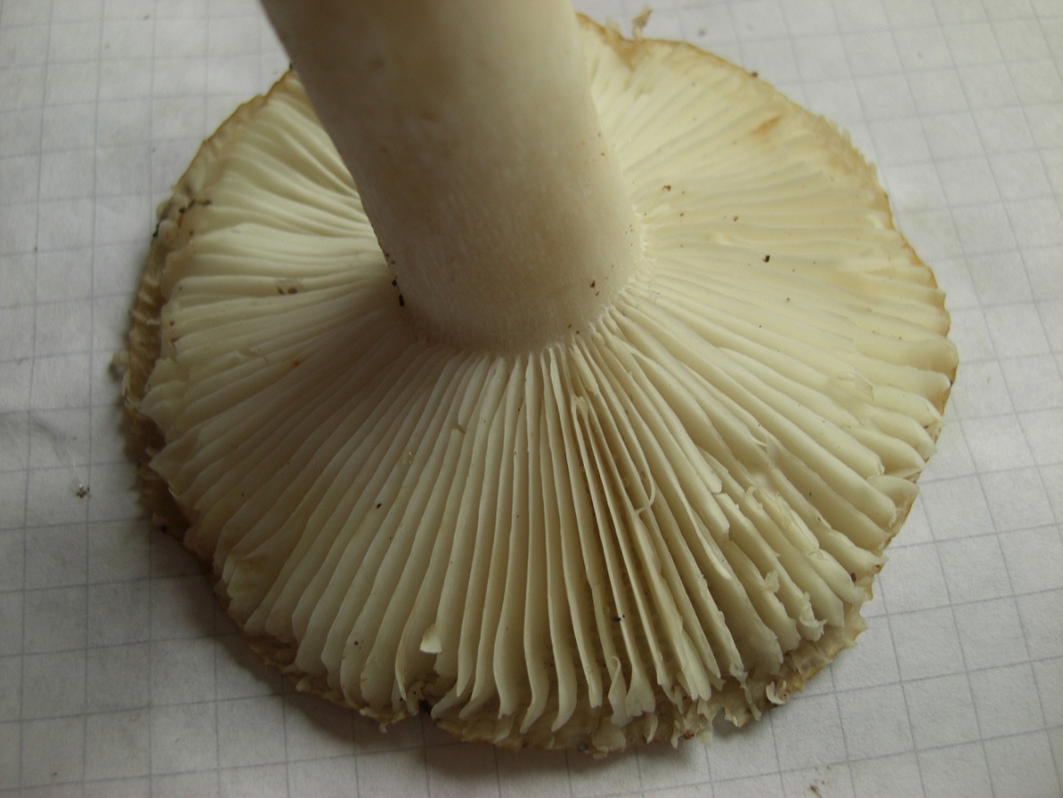Also, so in Natura hat der Stiel die gleiche Färbung wie die Lamellen - cremeocker. Kommt auf dem Foto nicht so gut rüber. Könnte aber auch gut sein, dass es ein scharf schmeckender Ockertäubling ist. Soll ja vorkommen.