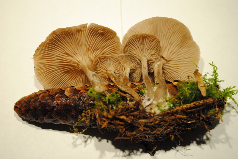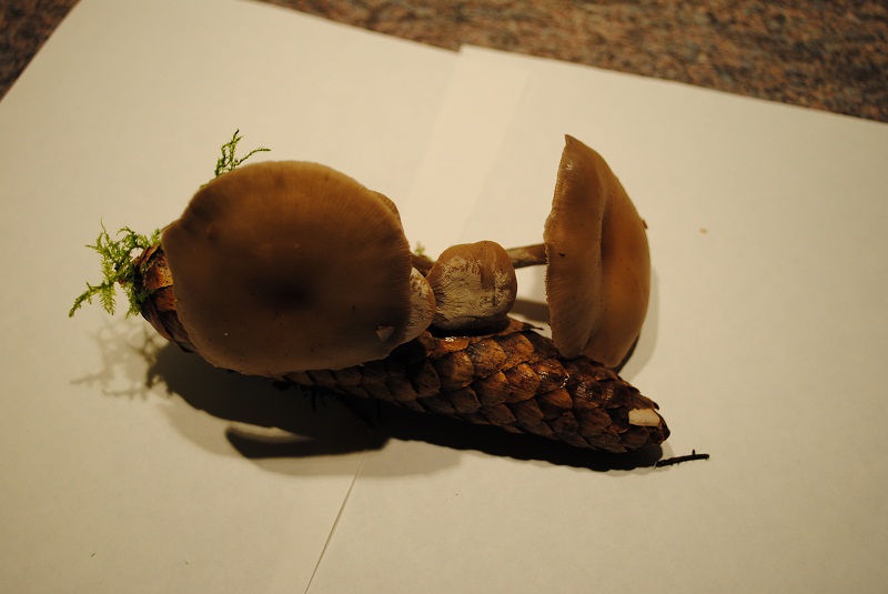 die pilze wuchsen auf kiefernzapfen, es standen ca 20 stück im umkreis von 2 metern