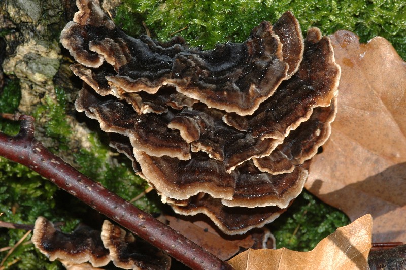 Leider ist mir an den herumliegenden Eichenästen noch kein Gallertpilz aufgefallen. Was die beiden anderen Arten angeht, hat Sie Herr Armin Kaiser, damals noch Mitarbeiter für die Großpilze Baden-Württembergs, an den dort befindlichen Eichen bestimmt. Leider ist der Kontakt zu ihm etwas dürftig, vielleicht gelingt es mir ja im nächsten Jahr, ihn wieder aufzufrischen, aber irgendetwas hat ihn mal verstimmt und dann habe ich es versäumt, nach zu haken.