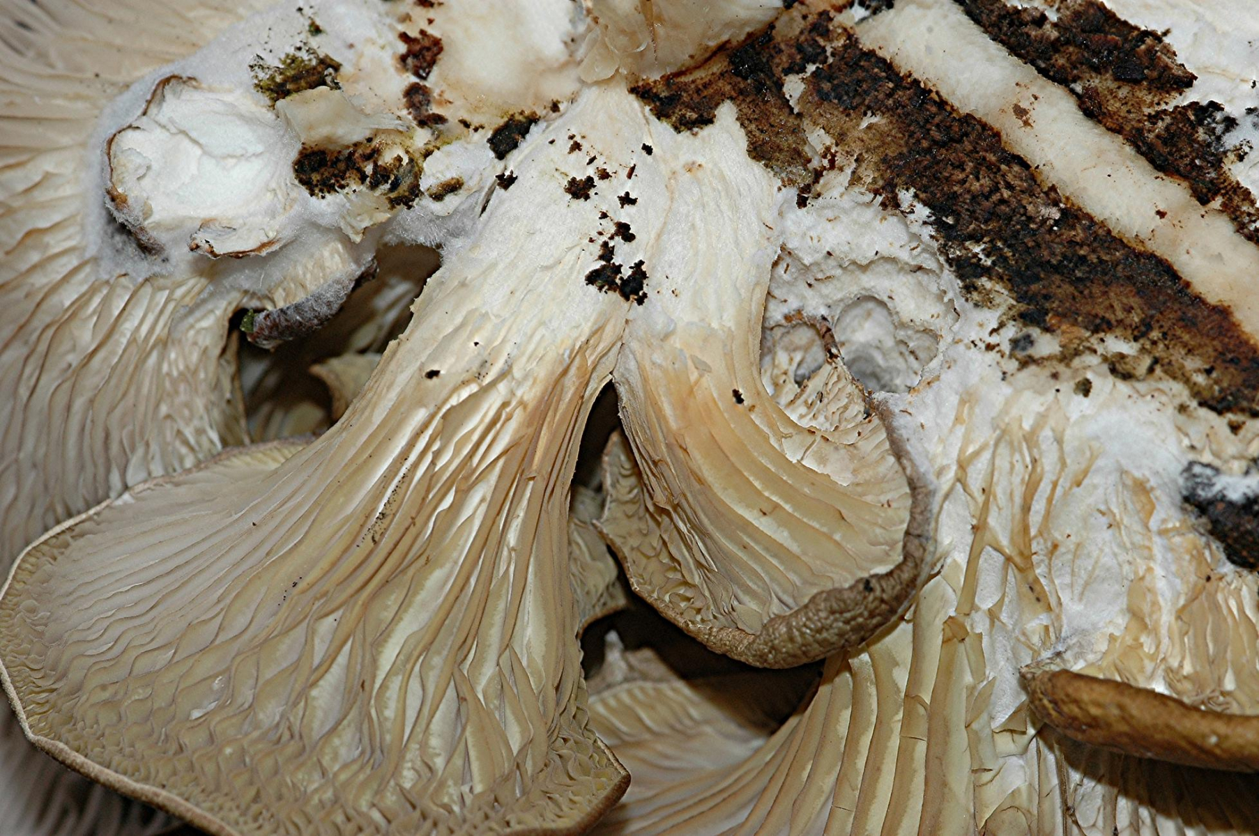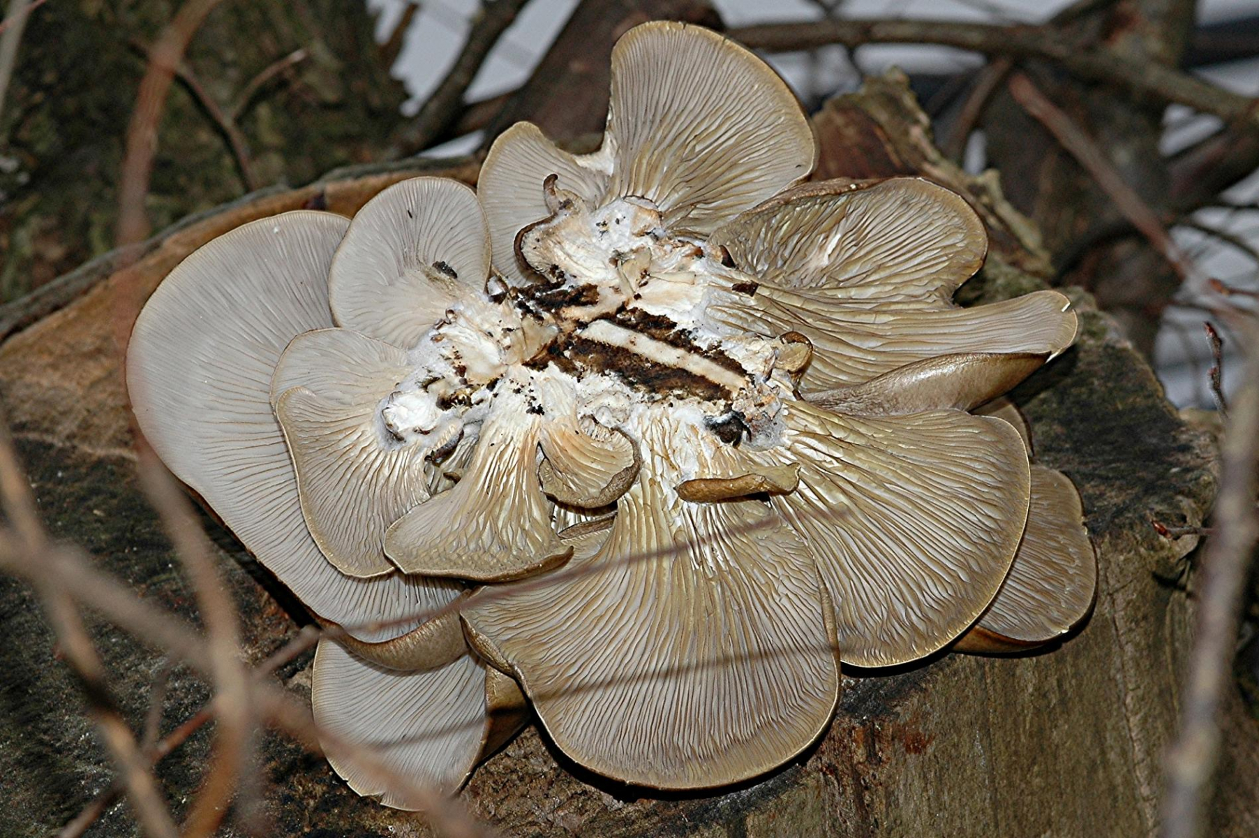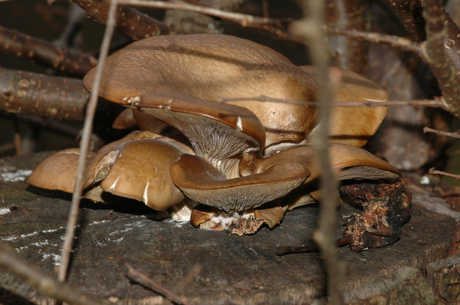 man könnte eher sagen, daß sie in einer Linie wachsen, so gesehen, wie man es von einem übergroßen Hexenring erwarten könnte. Auf Grund des Geländes ist es aber schwierig zu sagen, wie der Verlauf wirklich ist, auf der einen Seite geht es steil bergab, auf der anderen Seite ist ein Zaun (ich habe nicht gesehen, wie weit die Kette da noch reicht), d.h. ich muß mal noch die andere Seite des Zaunes begutachten. Pilze wuchsen in kleinen Grüppchen, d.h. zumeist waren es 2-4 Pilze und der Abstand zur nächste Gruppe vieleicht 50 cm. Ich hatte zuerst gedacht, es wären nur 3 und erst später bemerkzte ich, daß im tiefen Gras noch mehr versteckt waren.