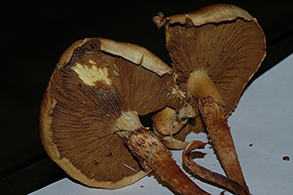 Hutdurchmesser von dem größeren Ex. das ich heute mit nach Hause genommen habe 4 cm. Sporenfarbe braun, Geruch irgendwie intensiv, leider bin ich nicht in der Lage Gerüche gut zu interpretieren, würde lediglich sagen, der stanardspruch, riecht nach Pilz, paßt hier nicht. Das Ulmenholz ist ausgesprochen morsch.