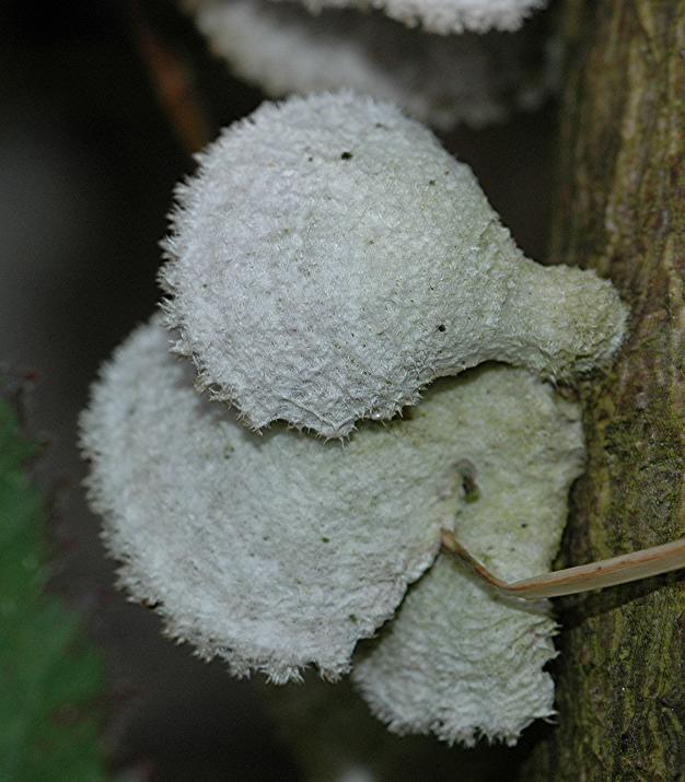 noch ein Punkt. Wenn dieser Pilz und der andere dieselben sind, dann würde ich mich doch sehr wundern. Ich habe sie ziemlich nah beieinander, aber auf verschiedenen Ästen gefunden und da gibt es doch gealtige Unterschiede. Leider gibt das Photo im Kriegelsteiner zu wenig her, um einen brauchbaren Vergleich zu ziehen und leider gibt es da gar keine Abbildung vom Striegeligen Schichtpilz.