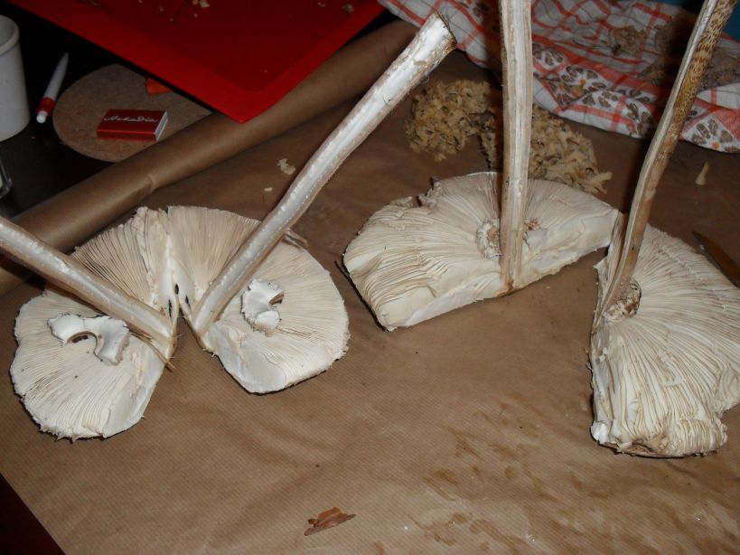 Ich habe jetzt gemerkt, dass ich mit den Bildern durcheinander gekommen bin und die Pilze jetzt auf den Tischen nicht mehr den Pilzen auf den Bildern zuordnen kann. Deswegen fällt das schon mal weg.