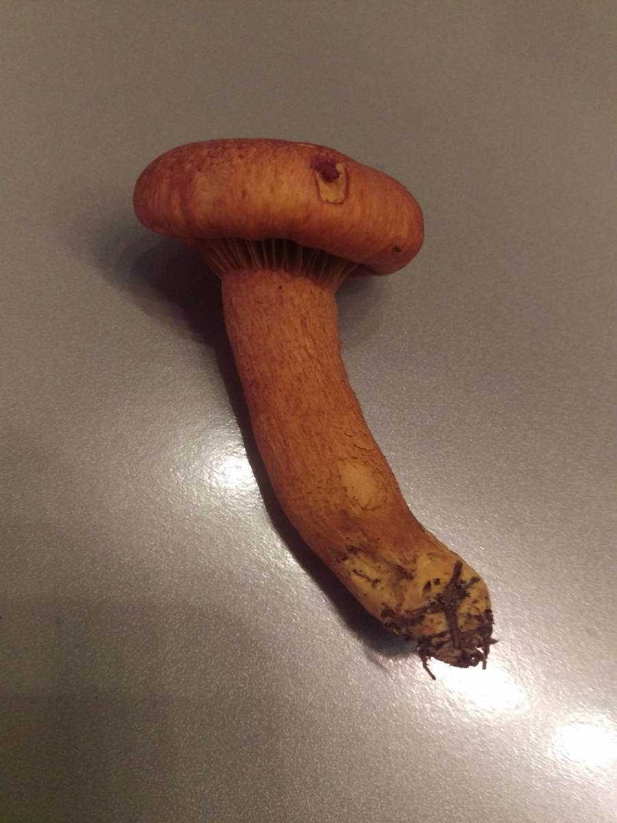 Hallo Anna,vielen Dank für Deine Antwort. Der Pilz ist jetzt relativ eingetrocknet aber die Lamellen haben sich leider nicht verfärbt. Ich habe mal Fotos und Beschreibungen von diesem Gelbfuß, die so im Netz kursieren, verglichen. Die Farbe ist ähnlich aber der Hutrand ist bei meinem extrem eingerollt und die Lamellen laufen recht weit am Stiel entlang. Ich habe kein Foto gefunden, wo das annähernd hinkommt. Aber ist nicht schlimm...trotzdem vielen Dank