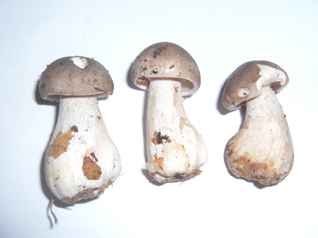 Die Pilze haben einen bräunlich-grauen Hut, sehr dicht stehende Lamellen, sind ca. 5 cm hoch, der Hutdurchmesser beträgt ca. 3 cm, die Stielbasis ist deutlich knollig aber ohne Scheide. Zum Geruch kann ich schlecht etwas sagen-nach Pilz eben, aber sie schmecken sehr lecker - nußartig leicht süßlich (habe mal ein kleines Stück roh abgeknabbert).Danke für Eure Hilfe