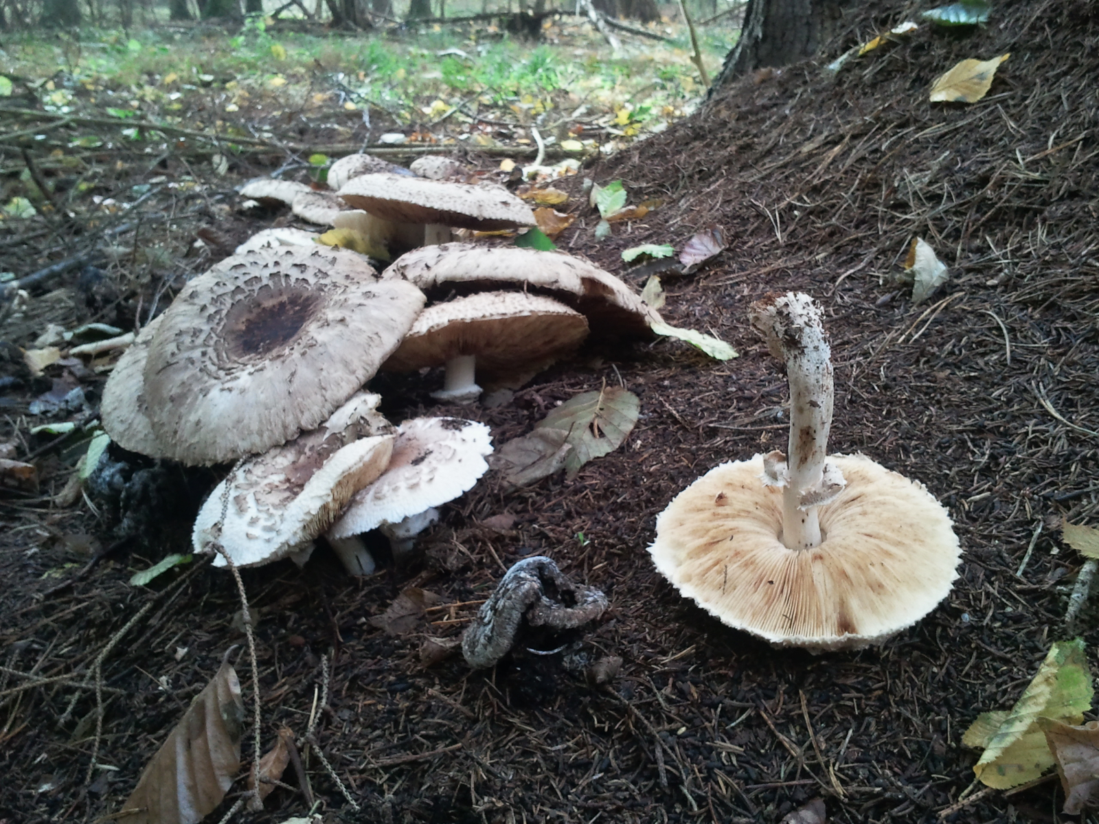 neulich habe ich bei einer Wanderung im Wald eine ganze Gruppe von Riesenschirmlingen auf einem Ameisenhaufen gesehen. Ich dachte bisher immer die Riesenschirmlinge sind lieber für sich und wachsen nicht in Gruppen.