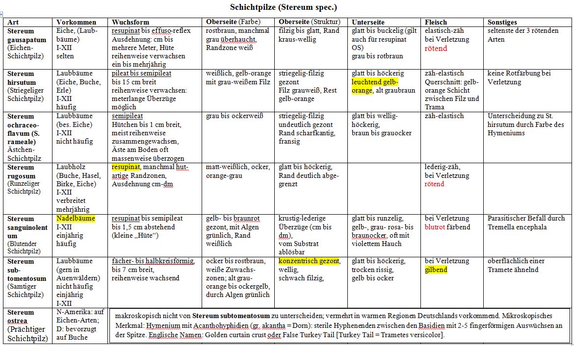 ...ich habe eurer Empfehlung gemäß die Tabelle erweitert. Die makroskopischen Unwägbarkeiten bezüglich Stereum ostrea sind aus dem Resultat abzuleiten: