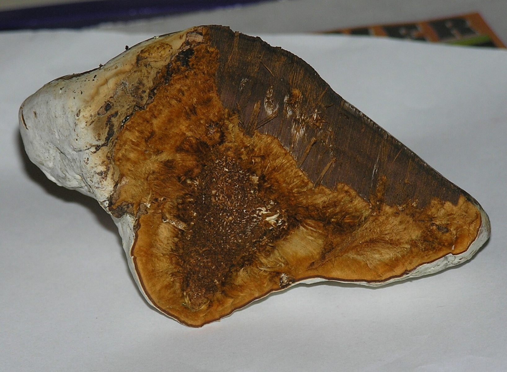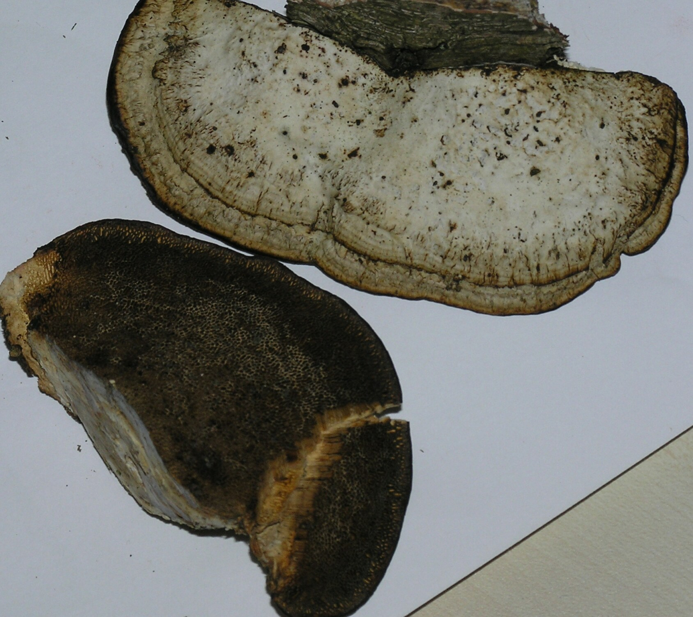 hier der letzte Pilz von heute: Der abgebildete Porling wuchs an Birke, ist wohl auch schon etwas älter. Der Baum stand zwar noch, scheint aber tot zu sein.