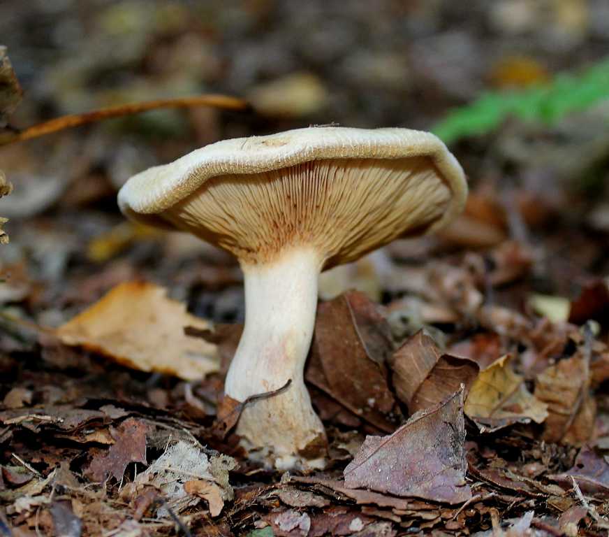 (Dass die Lamellenschneiden hell, vielleicht weißlich sind, fiel mir am Fund-