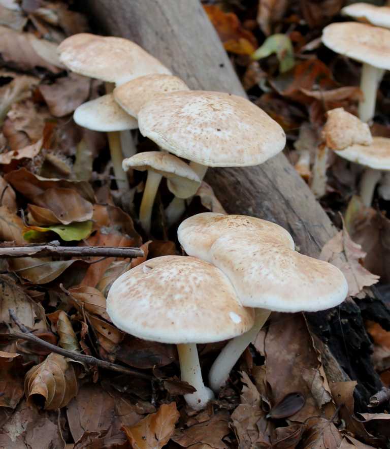 Beim vierten Bild ist zu erkennen, dass die Fruchtstände bereits gealtert sind. Was für einen Pilz könnte es sein?