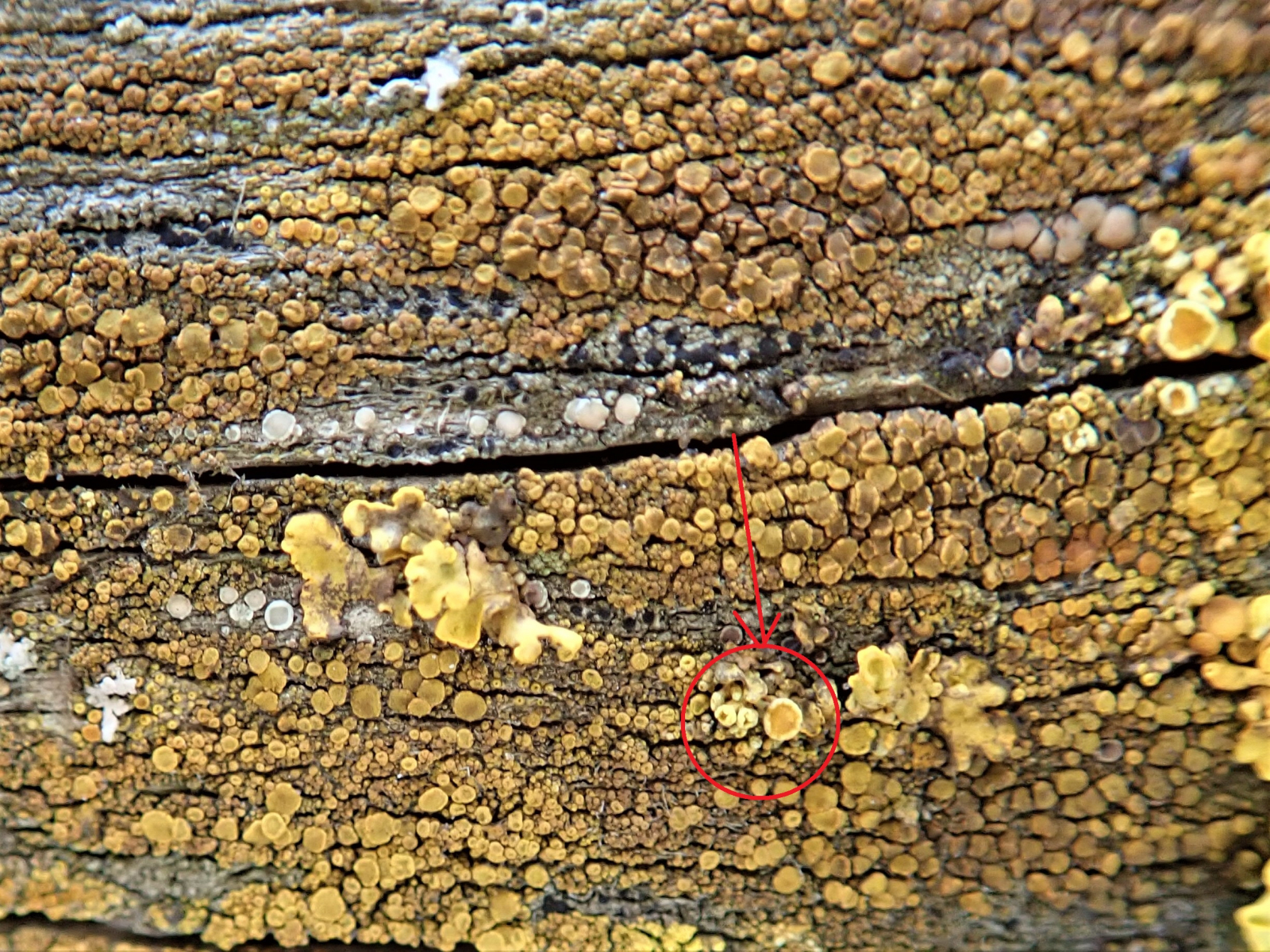 Ja, die citrina-Gruppe ist nicht immer ganz sicher auf Artniveau ansprechbar. Aber mit etwas Erfahrung kann man eigentlich schon meist sagen, worum es sich handelt. C. flavocitrina hat einen schuppigen Thallus (Lupe!); die Schüppchen brechen am Rande sorediös auf. C. citrina hingegen ist gänzlich sorediös aufgelöst, d.h. es sind keine deutlichen Lagerschuppen vorhanden. Der C. citrina sehr ähnlich ist die C. limonia, die jedoch etwas ins Grünliche geht.C. austrocitrina haben wir hier oben nicht, sodass ich zu der Art gar nichts sagen kann.