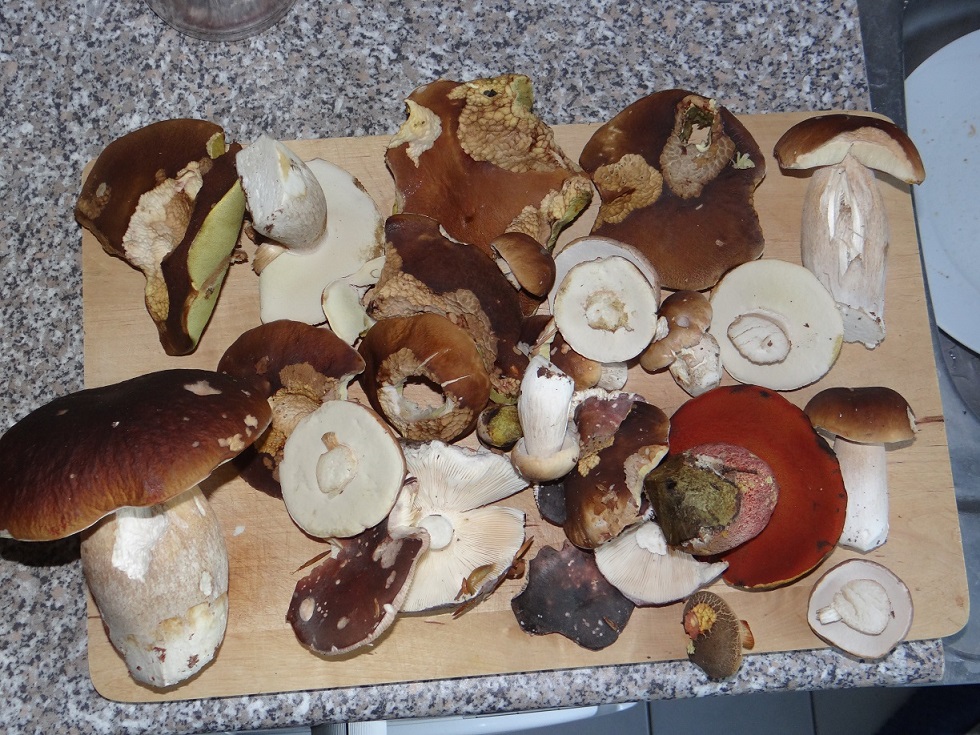 Es wäre hilfreich, wenn Du Deine Bilder zumindest nummerieren könntest. Des Weiteren: Zum Bestimmen von Pilzen ist oftmals auch die Stielbasis notwendig –“ also NICHT abschneiden, sondern rausdrehen!