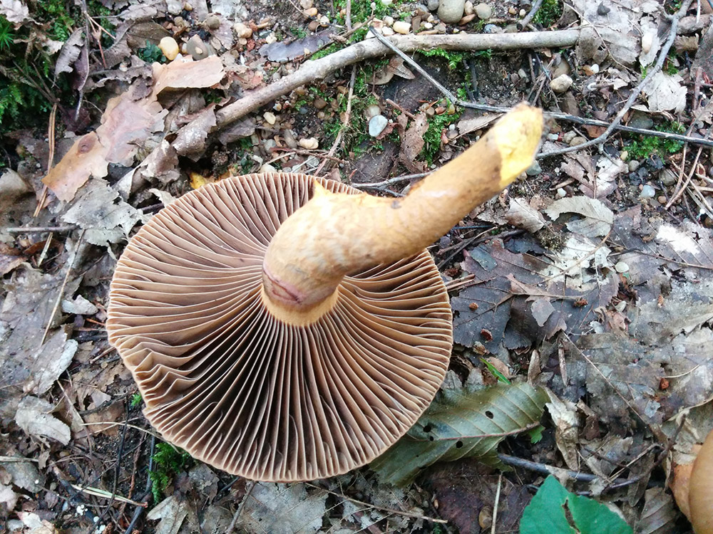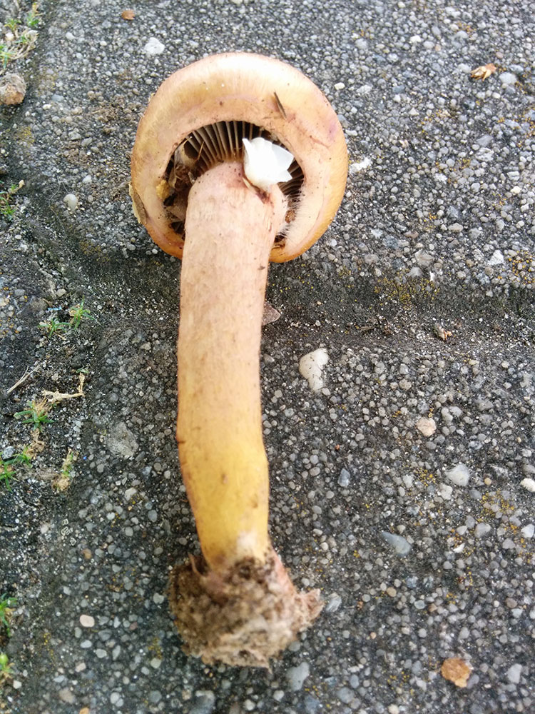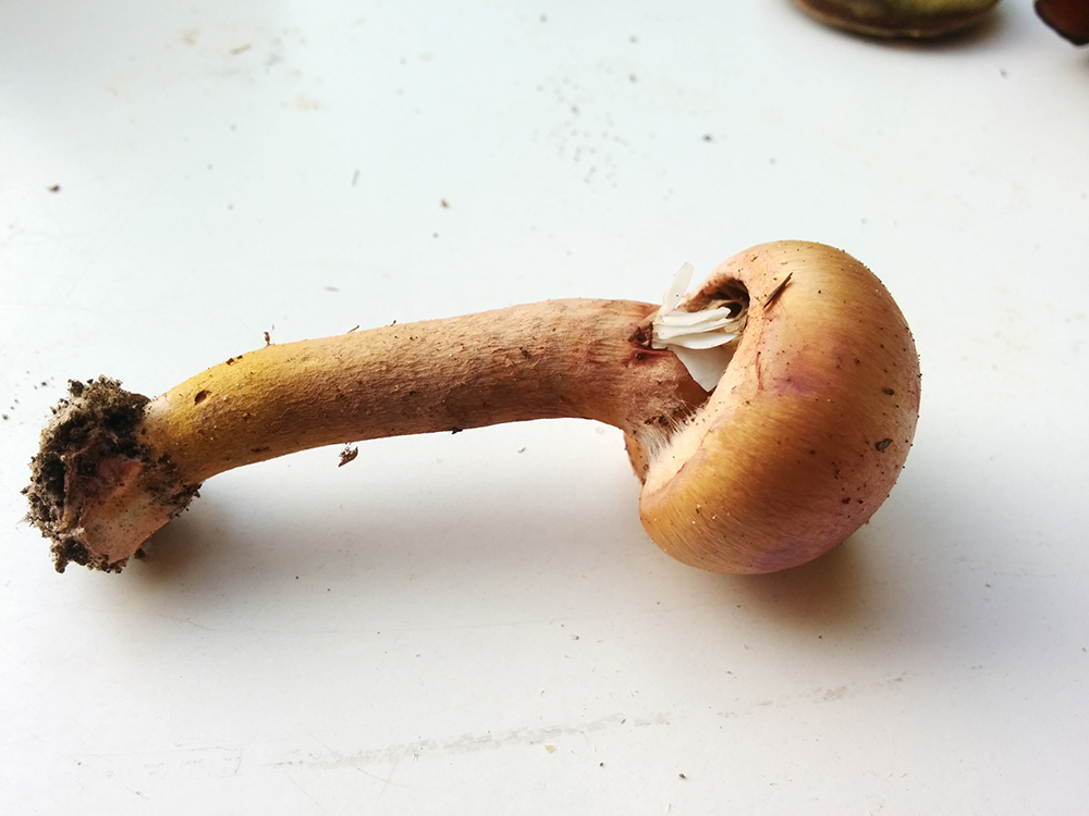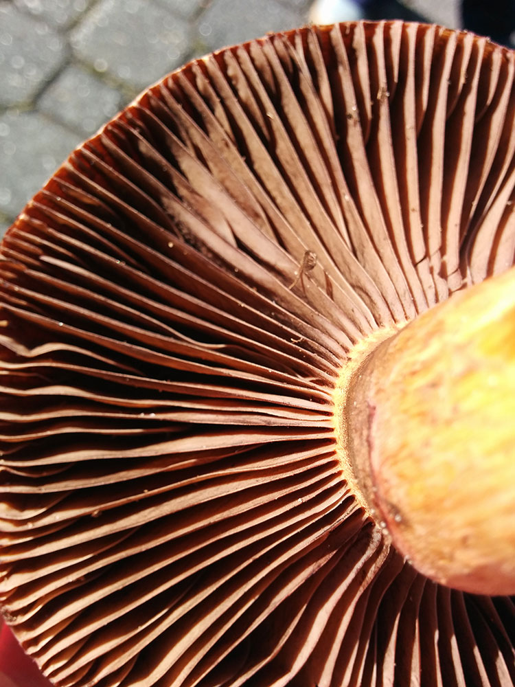 Zuerst sollte dies hier ein kupferroter Gelbfuß sein und damit essbar, richtig? Wuchs an der gleichen Stelle wie die anderen Exemplare im anderen Thread, die älteren Fruchtkörper waren schon sehr trocken, dieser hier ist noch recht jung.