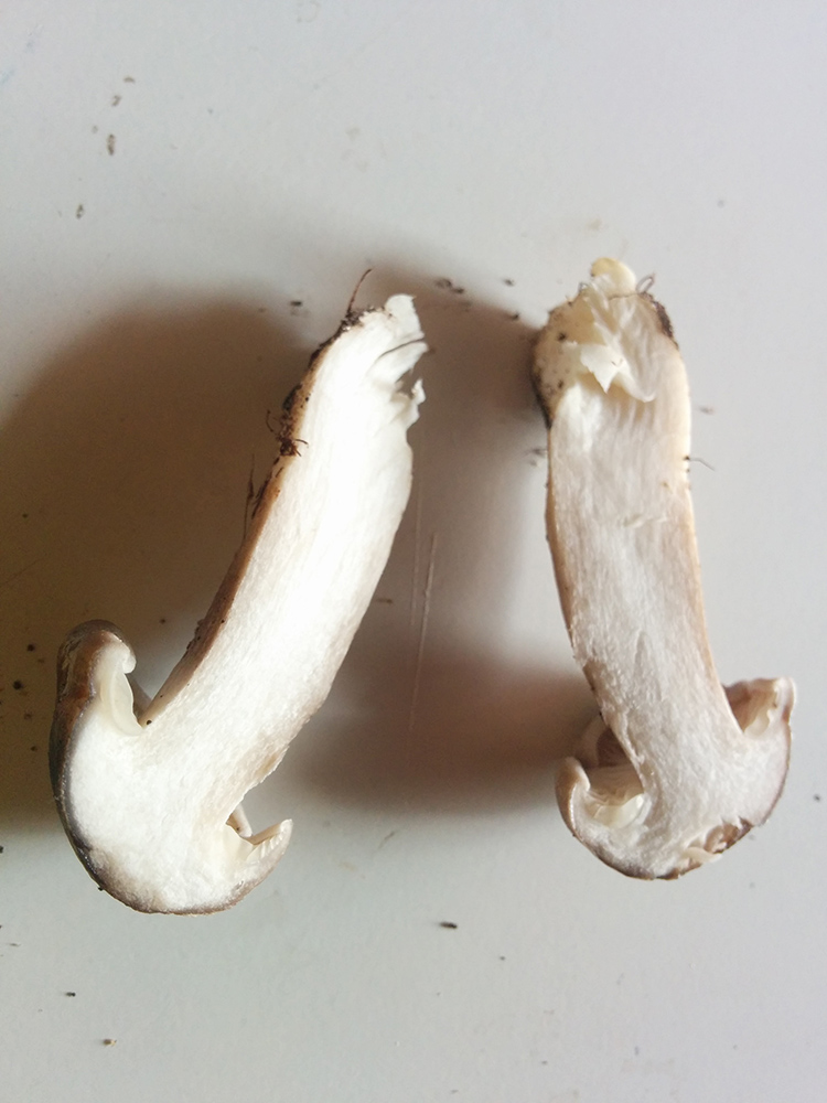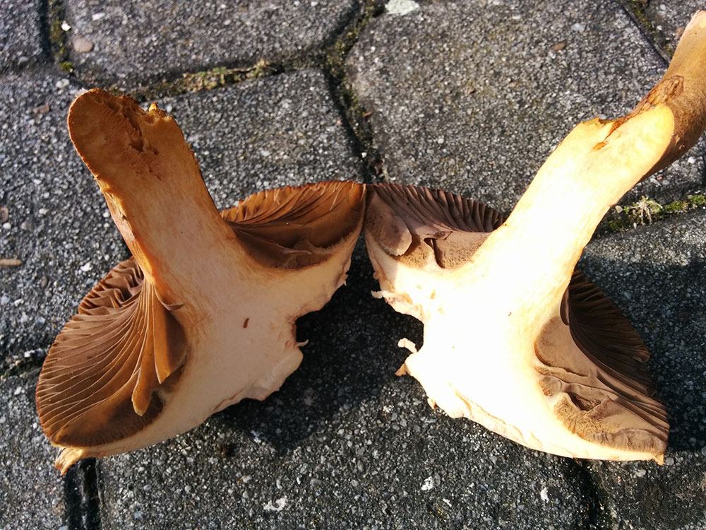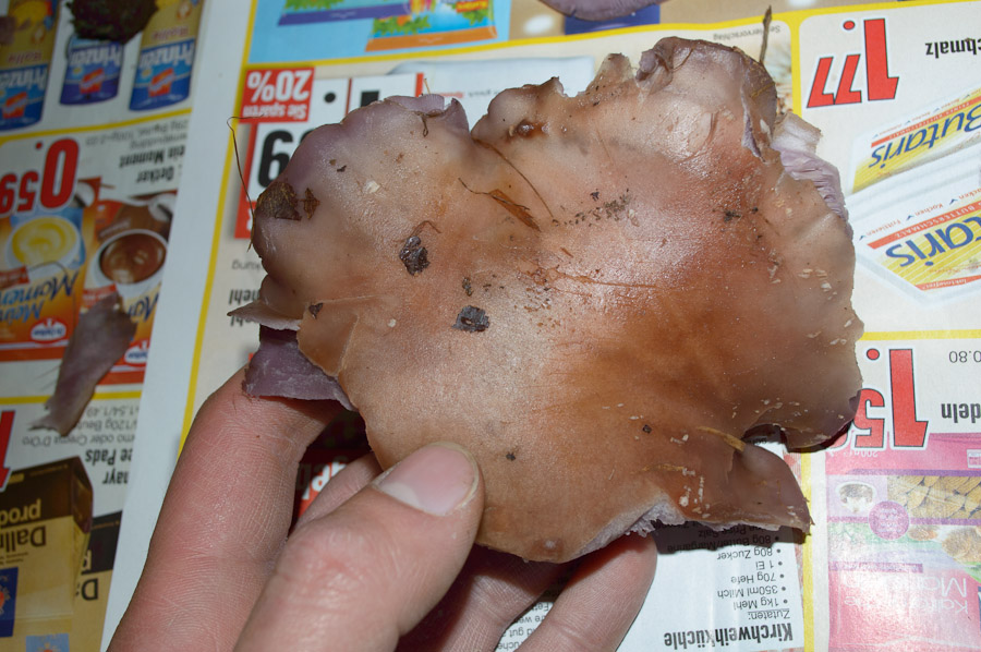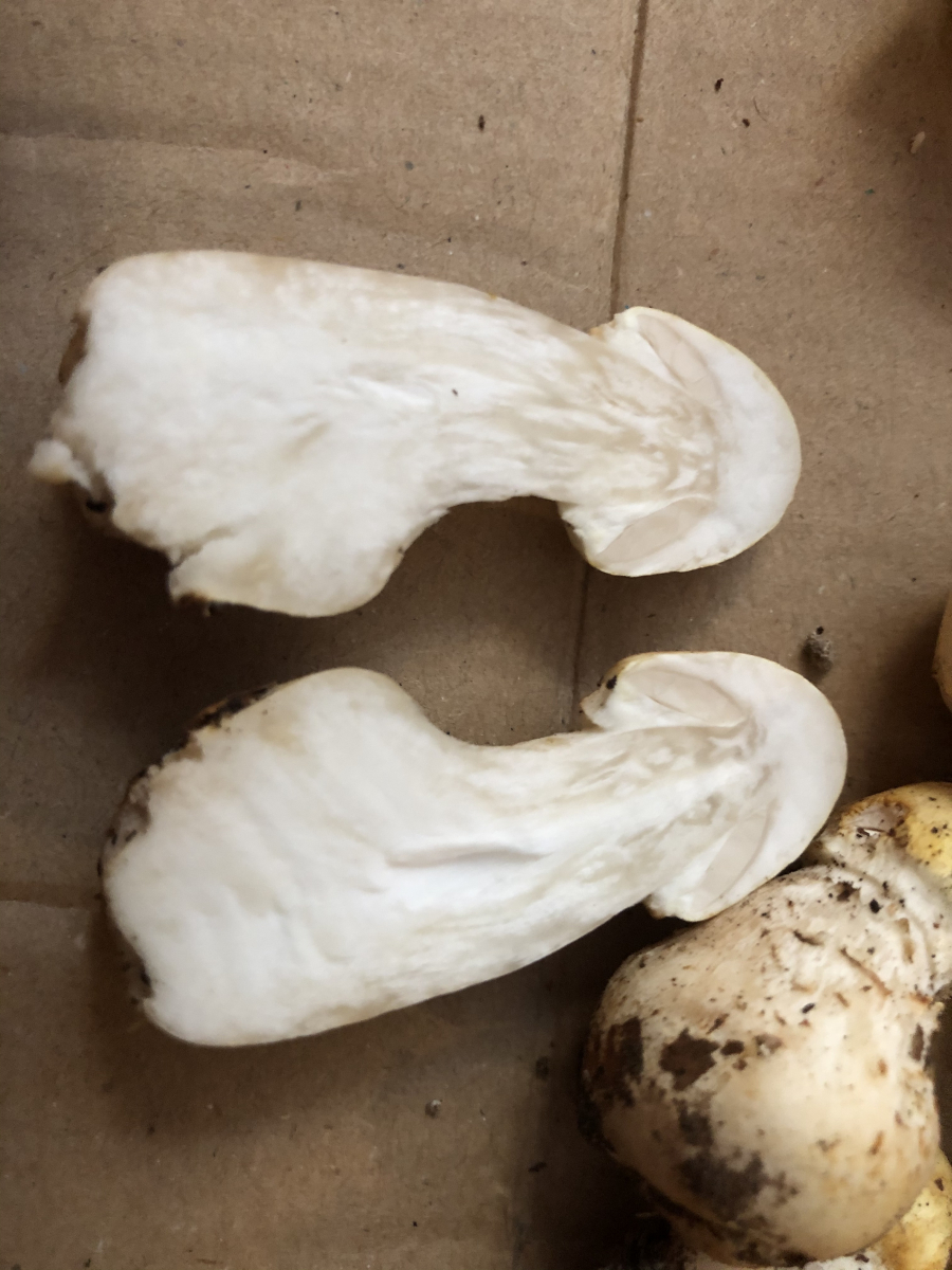 Was man auf den Fotos nicht sieht: der Geruch ist angenehm aber nicht so sehr pilzig, eher leicht süßlich. Bei Verletzung oder Bruch gibt es keinerlei Verfärbung.