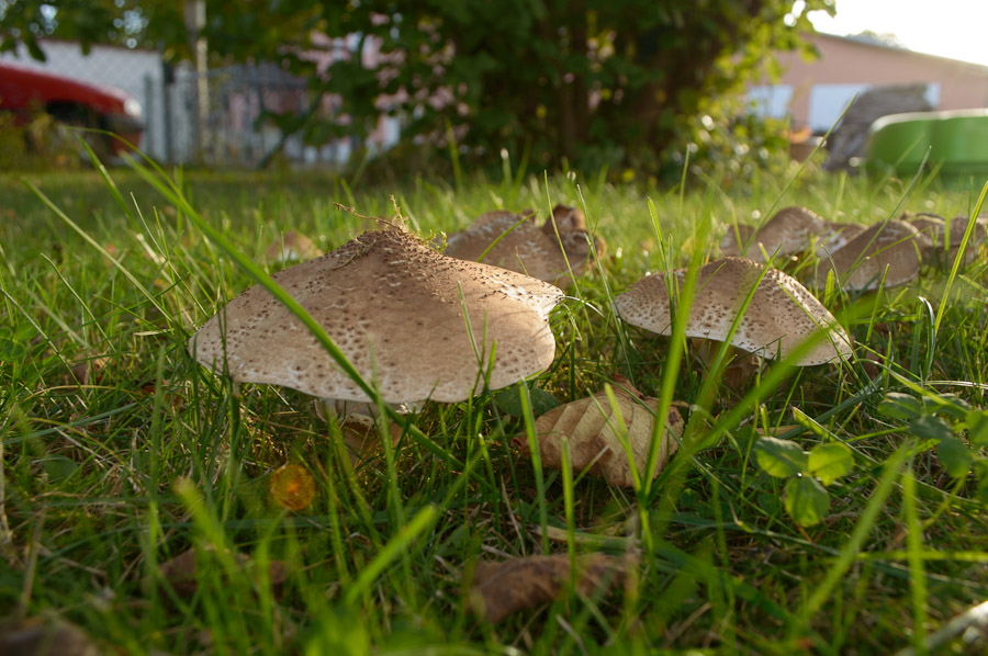 So, mittlerweile bevölkern Pilze in Massen unseren Garten. Neben einem giftigen Schirmling noch jede Menge Schopftintlinge und eben diese Kollegen, die ich dieses Jahr das erste Mal bemerke.