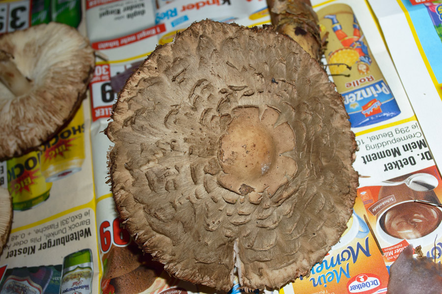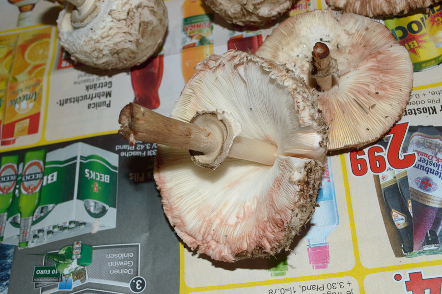 Meine Tochter hat gerade in eifriger Vorfreude auch alle anderen Exemplare des Pilzes herausgerupft und mir gebracht, mit einem älteren Exemplar wird es also schwierig, hoffentlich kommt noch was.