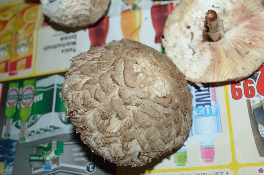Diese entsprechen genau der Beschreibung des olivbraunen Safranschirmlings, also Schuppen und Hut gleichfarbig. Daher werde ich die diesmal –žin die Pfanne hauen–œ ;).