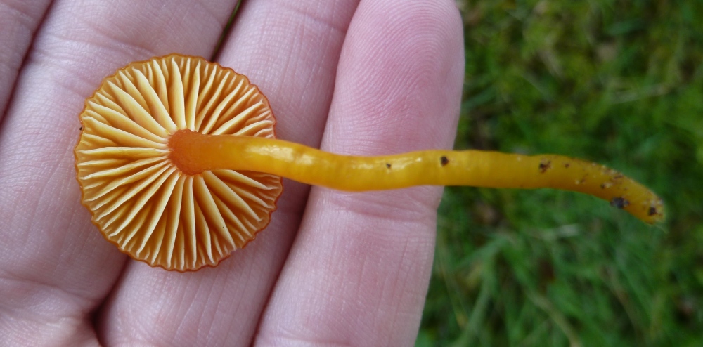Diese Winzbürschchen standen zu einem guten Hundert verstreut an einem grasigen Wegesrand neben den so schwierig bestimmenden rot-orangen Saftlingen: