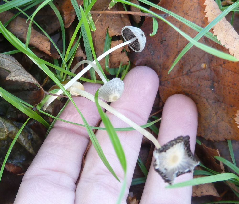 Hier blitzte mir gestern morgen in der Dämmerung weiß ein Rudel Schirmlinge entgegen. Das musste natürlich heute in Augenschein genommen werden!