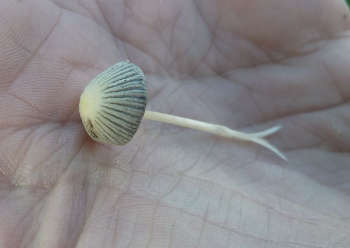 Auffallend war, dass die Pilze fast immer paarweise standen, ein großer mit einem kleinen dran. Auch bei dem größten Exemplar, das ich an Ende gepflückt habe, tauchte noch ein winziger Knubbel auf, den ich vorher nicht gesehen hatte.