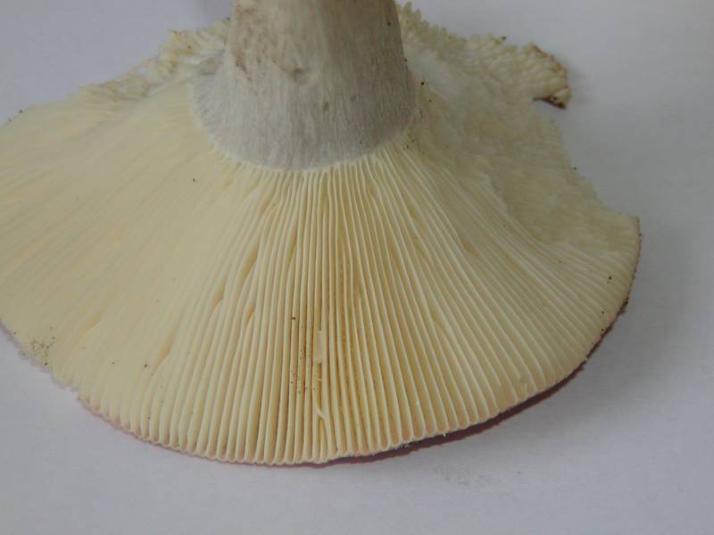 Das Fleisch ist bröckelig, die Lamellen nicht ganz so, Geruch ist mir nicht besonders aufgefallen, aber der Geschmack war beim Zerkauen scharf (eher angenehm, nicht heftig scharf). Die Lamellen sind fein und untermischt.