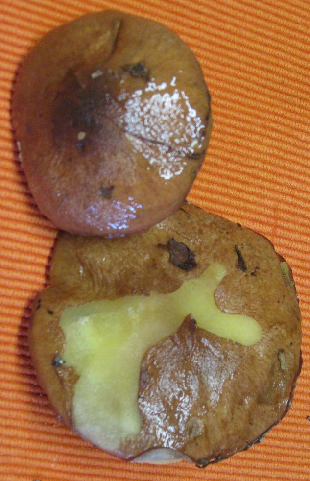 Ich habe einige angeschnitten, die Schnittfläche mit der Zunge probiert und konnte keinen Bittergeschmack feststellen. Trotzdem bin ich persönlich der Meinung, dass es sich hier um Gallenröhrlinge handelt. Bislang habe ich auf so einer Fläche noch nie eine so große Anzahl dieser Pilze gesehen. Vielleicht könnt ihr mir ja weiterhelfen. Nein, ich möchte keine Essfreigabe, dafür hänge ich zu sehr am Leben. Ich möchte lediglich lernen. Lernen vor allem, weil ich nicht weiss, wie bitter ein Gallenröhrling schmecken muss.