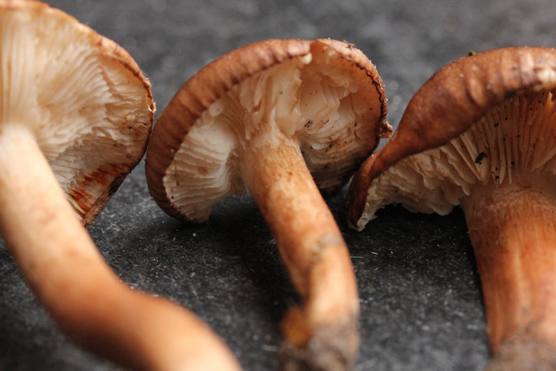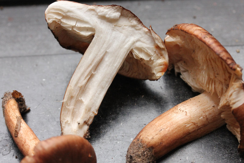 Edit: Ich hatte diese Art gestern abend auch in Betracht gezogen, da das Aussehen wirklich sehr gut passt, konnte dann aber beim Quetschen der Fruchtkörper (Lamellen) keine Verfärbung beobachten, auch nicht über Nacht. Wegen des zudem milden Geschmacks, der hier bitter sein müsste, hatte ich ihn dann ausgeschlossen. Ich habe eben nochmal probiert... Ich kann hier einfach keine Bitterkeit schmecken, obwohl ich den Geschmack als unangehm empfinde.