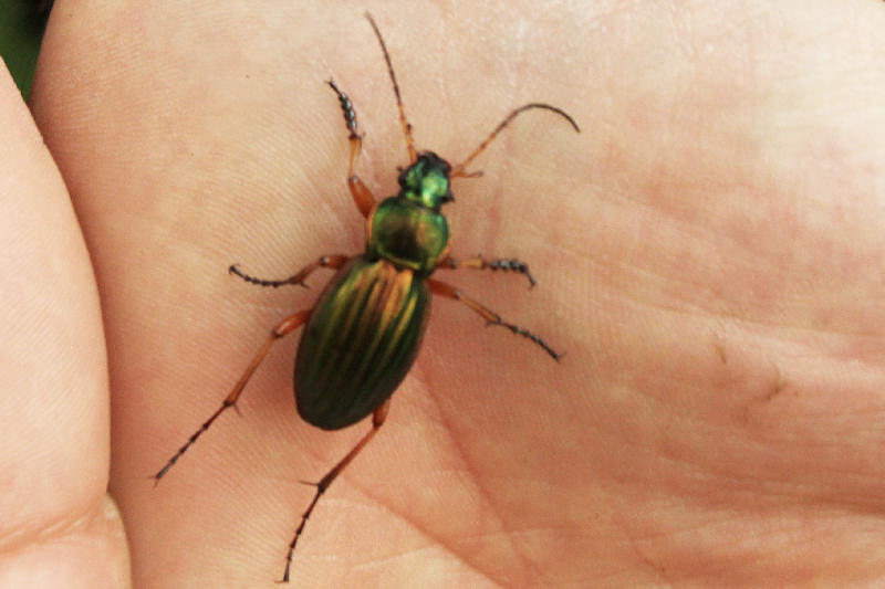 Pablo hat den schmucken Goldschmied gefangengenommen, und lässt ihn hier schon wieder frei: Goldlaufkäfer, Carabus auratus