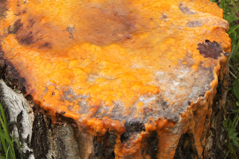 Merkwürdiges glibbriges Farbspiel am Strunk einer Birke... so etwas Ähnliches habe ich schon zwei Mal gesehen und abgelichtet, weiß jemand, wie das zu Stande kommt? Harz + Baumsaft + X?