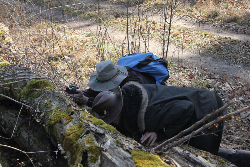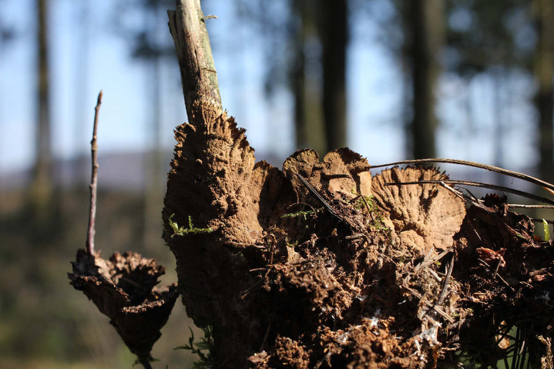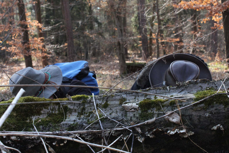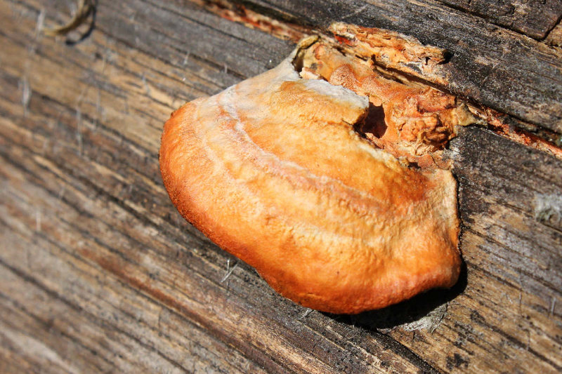 10. Zu sehen gibt es einen Unbekannten auf Nadelholz, an der Unterseite eines Stammes...