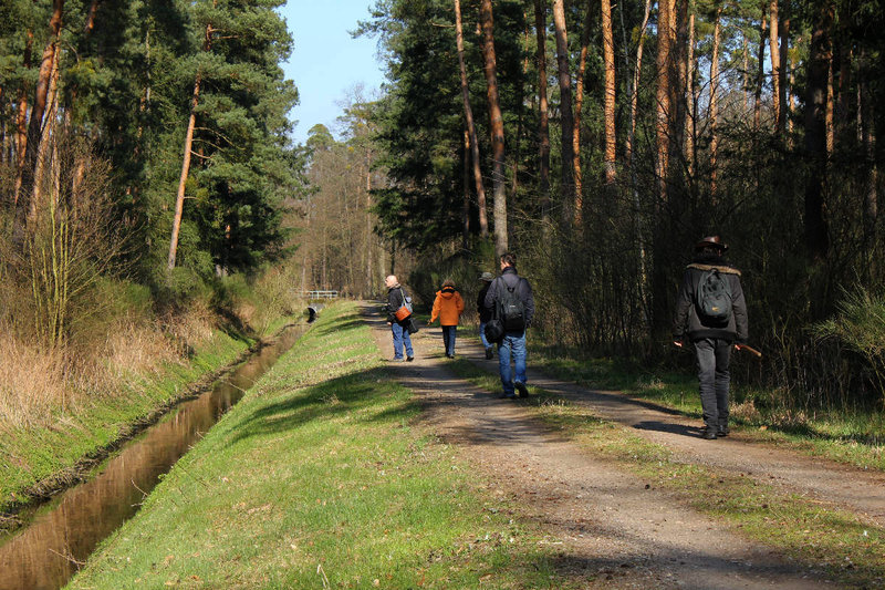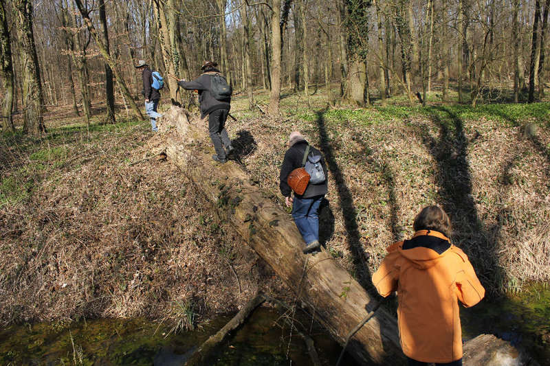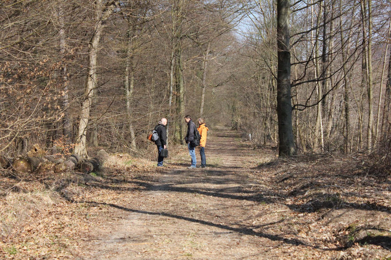 Peter sucht gerade noch auf der anderen Straßenseite unter Apfelbäumen noch nach Last-Minute-Morcheln. Die gab es heute dann aber leider nicht mehr. Auch wenn wir uns alle vorstellen konnten, dass sie prinzipiell in diesem Gelände stehen könnten, nach dem nächsten Regen.