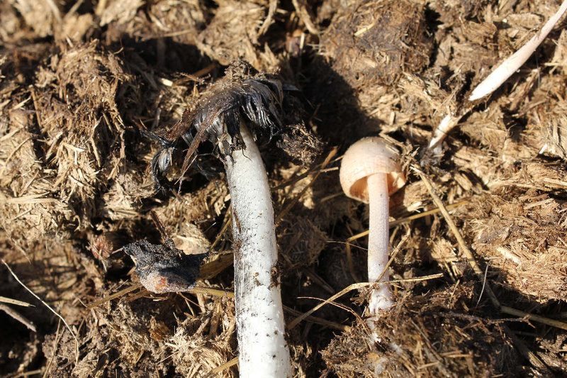 Könnte dies evtl. der Schneeweißer Dungtintling sein, Coprinus niveus... oder vielleicht der rosafüßige... Nobi? Mein Exemplar ist auch etwas lädiert und schrumpelt gerade auf der Heizung in sich zusammen. Könnte verschickt werden.