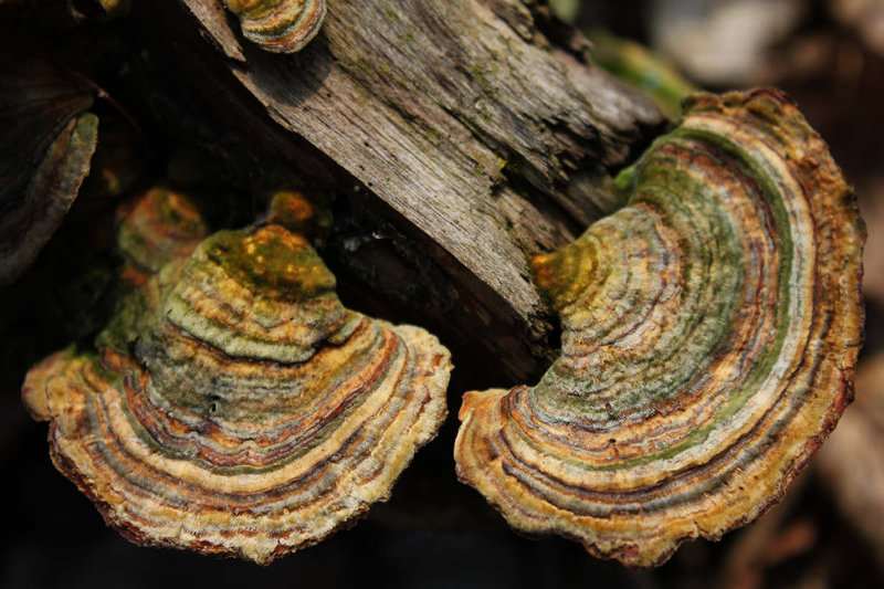Zur Auflockerung noch was Bekanntes, ein paar Schmetterlingtrameten, Trametes versicolor - zu meinen liebsten Fotomotive gehörend - die gab es wieder einmal in allen Farben und Formen...