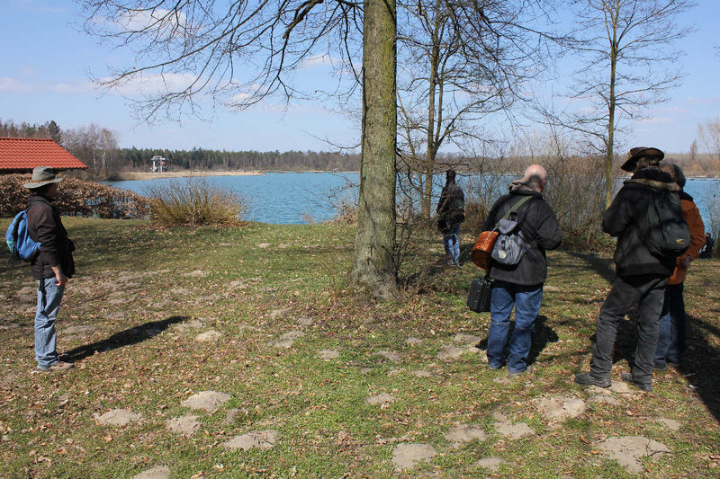 Irgendwann reichte uns unser Gelände und die tollen Anemonen-Becherlinge nicht mehr. Diese Gleise hier haben wir natürlich nicht überquert, um zum Baggersee auf der anderen Seite zu kommen, in der Hoffnung, feuchteres Gelände zu finden. Auch wenn weit und breit kein Bahnübergang zu sehen war. Darf man ja auch gar nicht... *räusper*