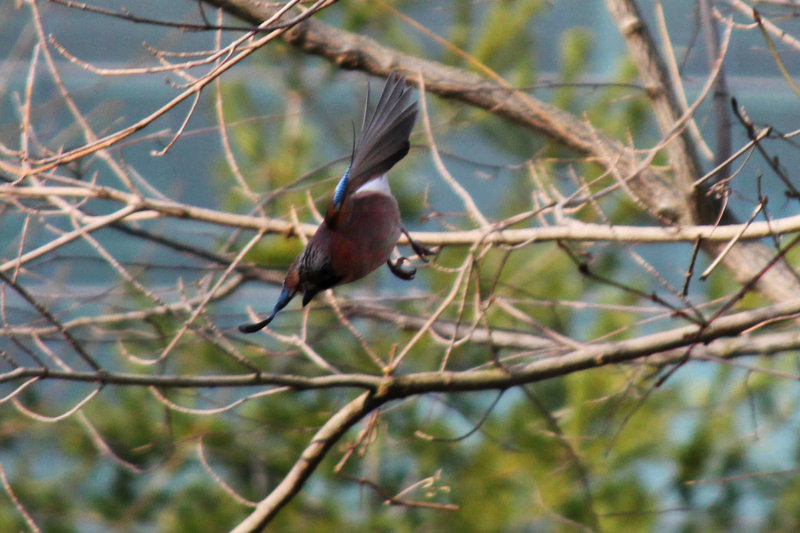 So war er auch nur auf wenigen der vielen Fotoversuchen letztlich auch gut zu sehen - zu schwierig war es, den flinken Hüpfer auf die Entfernung auch scharf zu bekommen. Oh, wie hätte ich hier eine Kamera mit wesentlich mehr Zoom gebrauchen können. Kaum konnte man ihn im Ufergestrüpp ausmachen... war er auch schon wieder verschwunden. Oder ein neuer Trupp Besucher trampelte den Weg entlang, und verscheuchte ihn wieder für eine ganze Weile. Aber immerhin gelang mir doch der Fotobeleg.