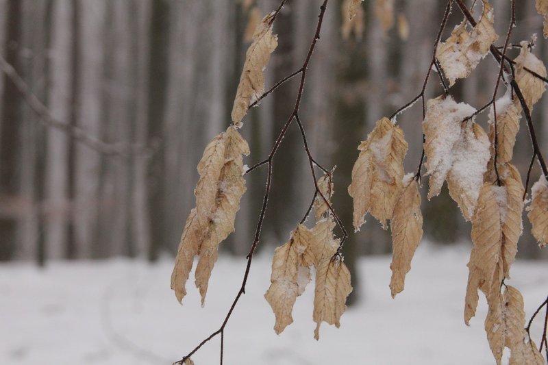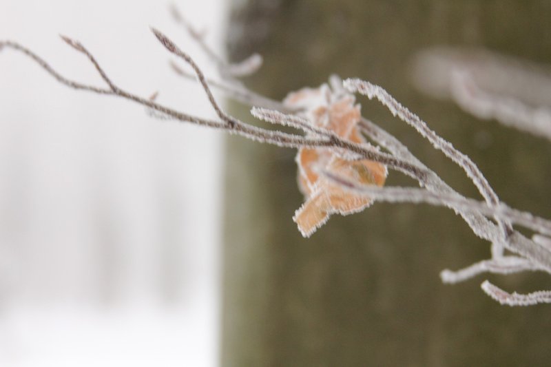 ... und die wenigen, übrig gebliebenen Blätter sehen in der weißen Welt richtig bunt aus: